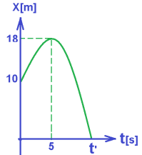 يبدأ الجسم حركته من الموقع X =10m بسرعة ابتدائية موجبة (ميل الرسم البياني موجب) ، وينهي حركته في نقطة أصل المحور بسرعة سالبة (ميل الرسم البياني سالب). يكون الجسم على الجانب الموجب لمحور الحركة خلال فترة الحركة بأكملها.