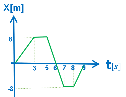 للتلخيص: يتحرك الجسم من بداية المحور، بسرعة ثابتة في اتجاه المحور حتى الموقع: «math xmlns=¨http://www.w3.org/1998/Math/MathML¨»«mstyle mathsize=¨20px¨»«mi mathvariant=¨bold¨ mathcolor=¨#FF6600¨»X«/mi»«mo mathvariant=¨bold¨ mathcolor=¨#FF6600¨»=«/mo»«mn mathvariant=¨bold¨ mathcolor=¨#FF6600¨»8«/mn»«mi mathvariant=¨bold¨ mathcolor=¨#FF6600¨»m«/mi»«/mstyle»«/math» , يتوقف في هذا الموقع لمدة ثانيتين.