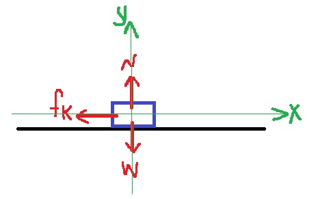 لإيجاد معامل الاحتكاك ، نكتب معادلات الحركة: