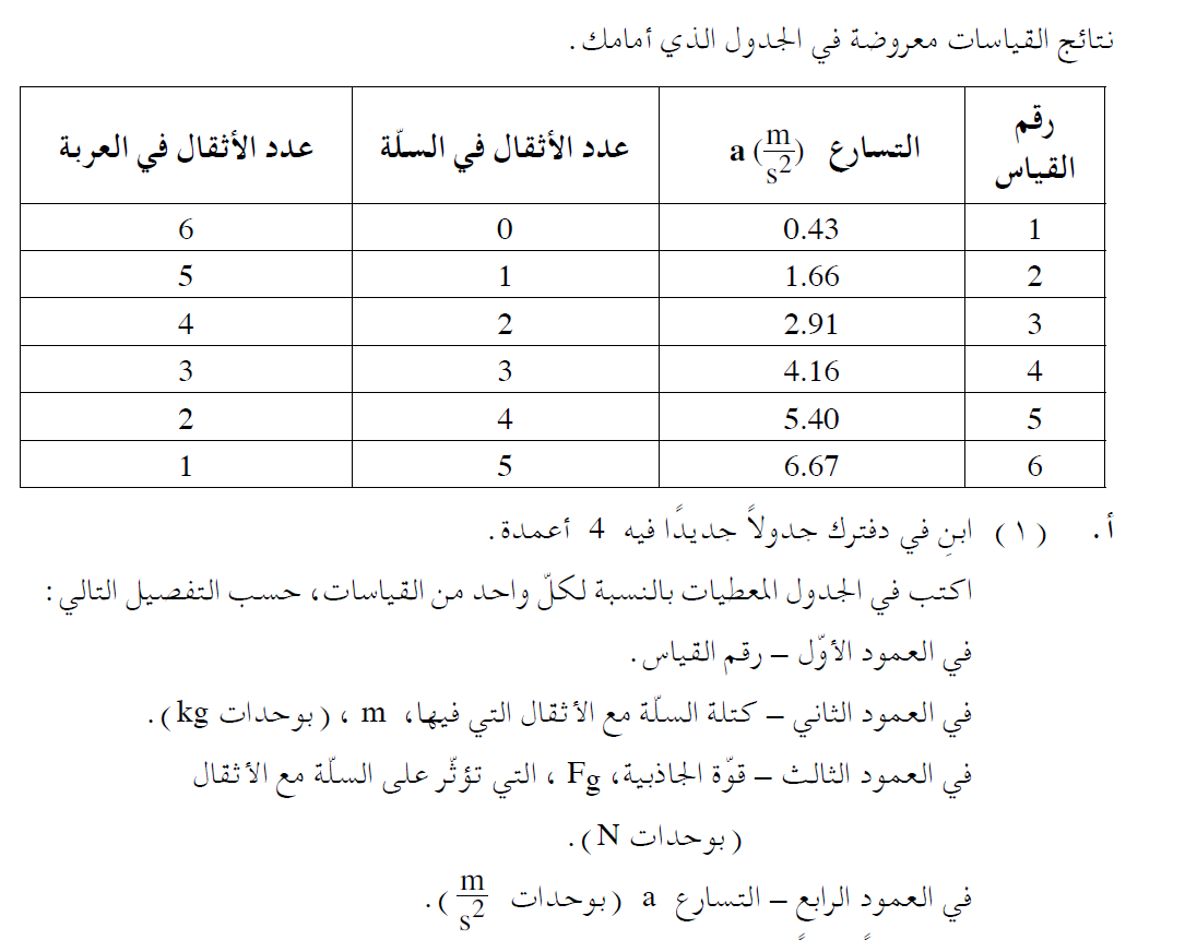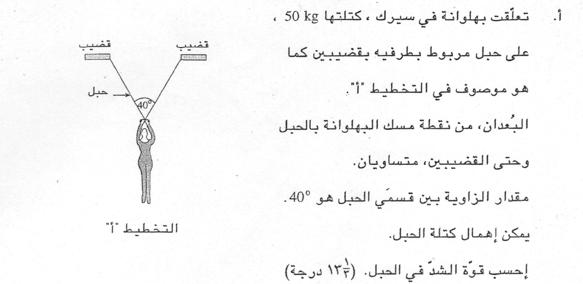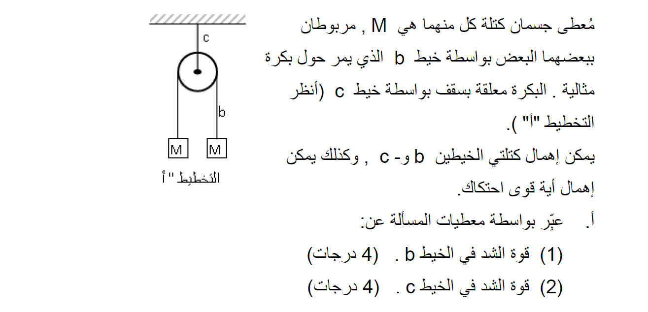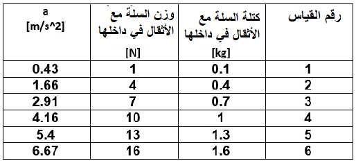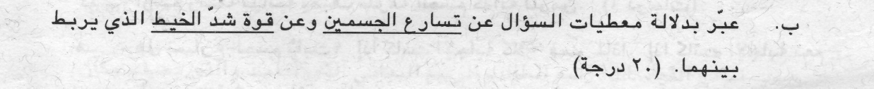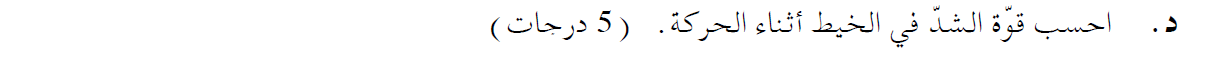 التعبير عن قوة الشد التي تم الحصول عليها من معادلة حركة السلة عندما تتحرك المنظومة بتسارع هو:
