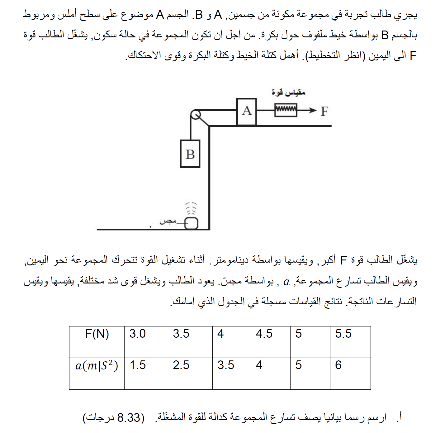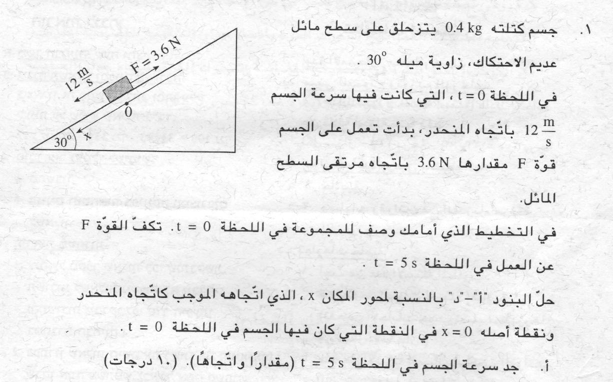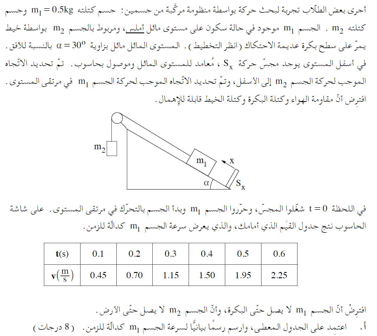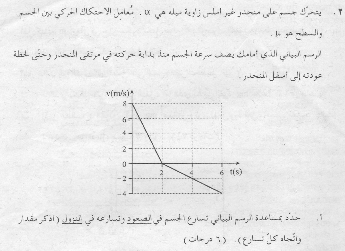 - 3. 2019- يتحرك الجسم على مستوى مائل وموصول به جسم معلق