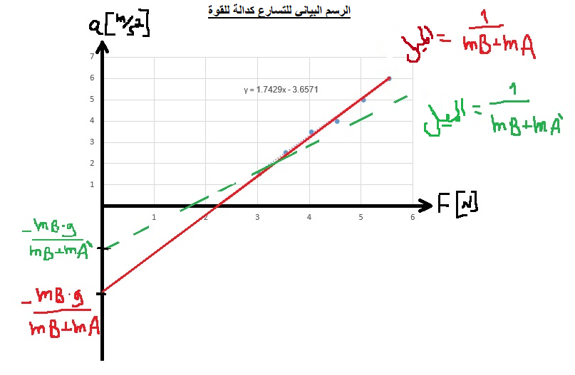 نعوّض المعطيات في تعبير التسارع ، ونحسب تسارع الأجسام: