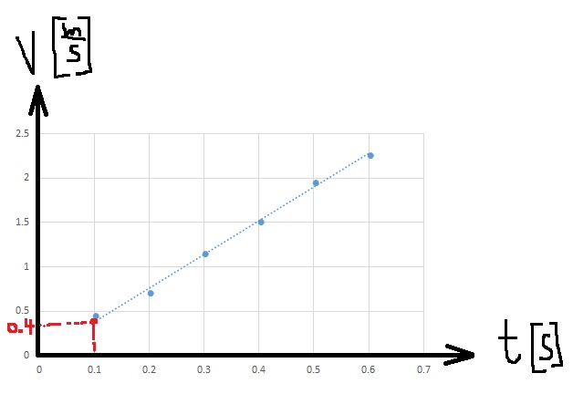 نعوّض المعطيات في التعبير الذي طورناه، ونجد السرعة الابتدائية: