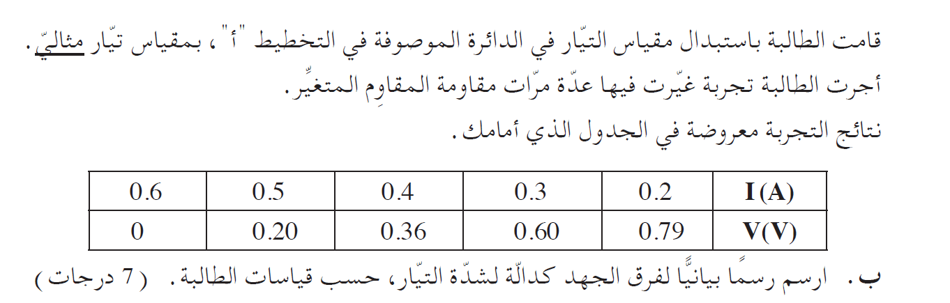 ولذلك فإن الدائرة التي سيتمكن الطالب من إضعاف شدة الإضاءة فيها حتى تنطفئ هي الدائرة (أ).