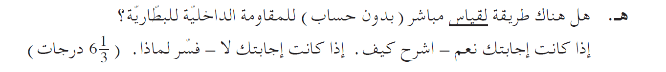 1. عندما يكون التماسّ المتحرك في الطرف الأيمن في الدائرة (ب)، ستكون شدة التيار صغيرة ولكن ليست صفراً، نحسب شدة التيار في هذه الحالة: