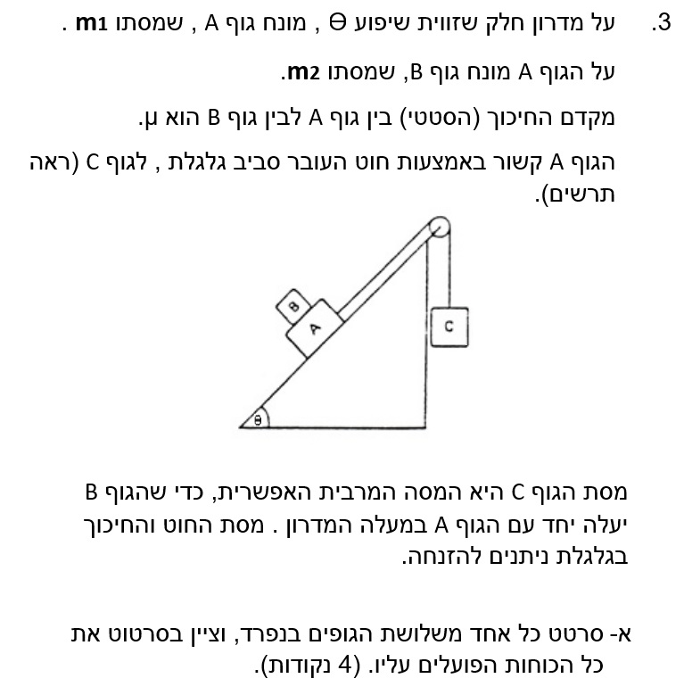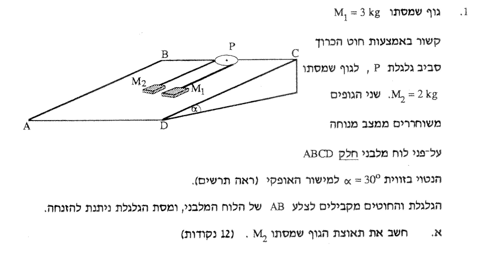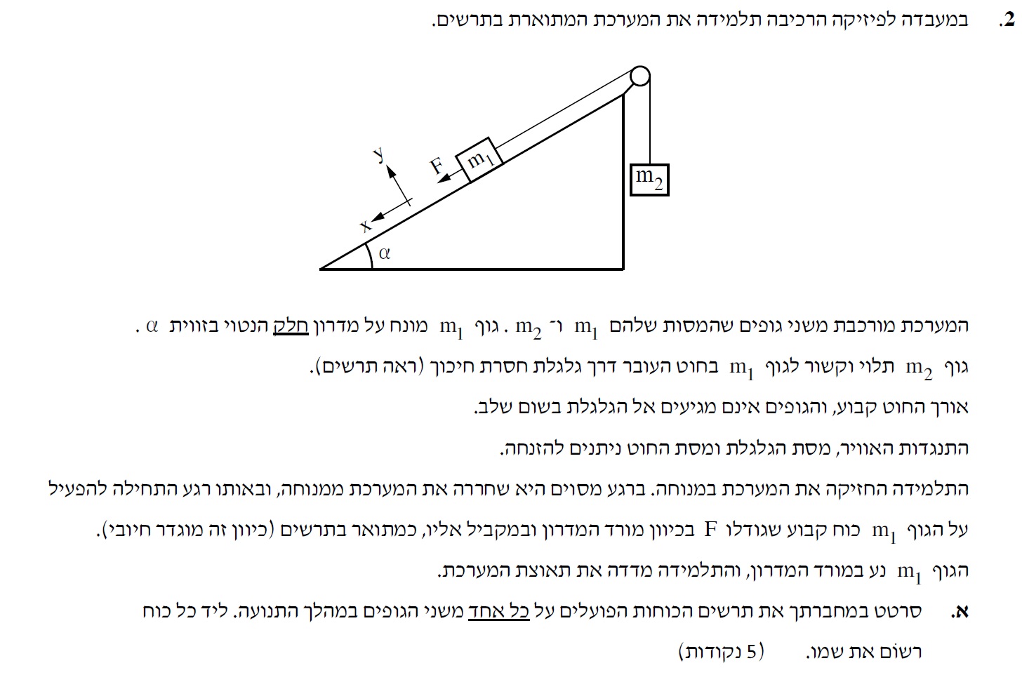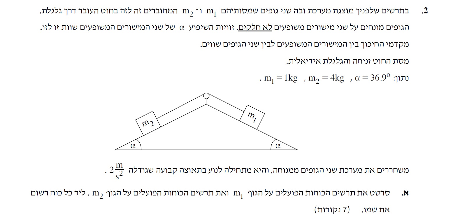- 5. 2019,2- גוף נע על מישור משופע ומחובר לגוף תלוי