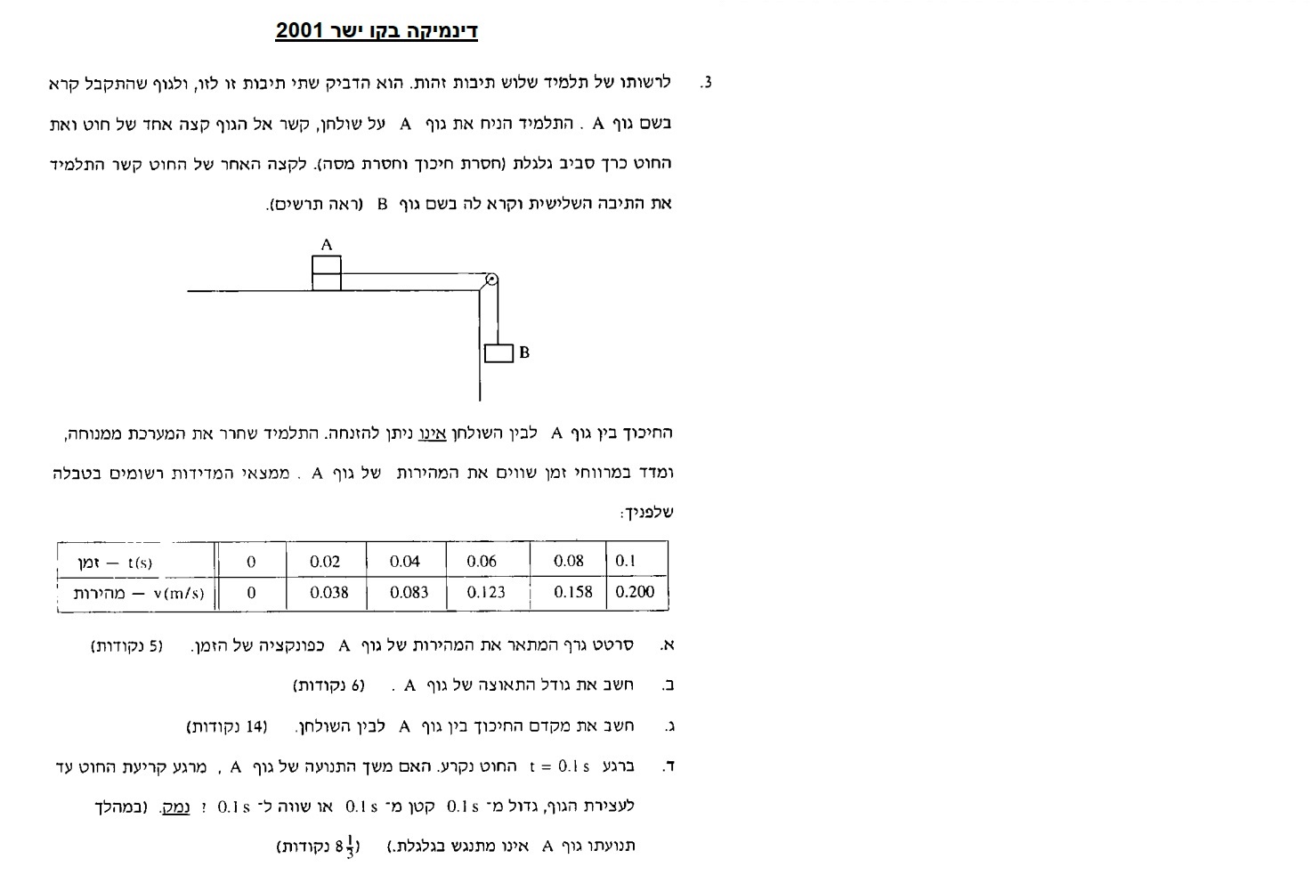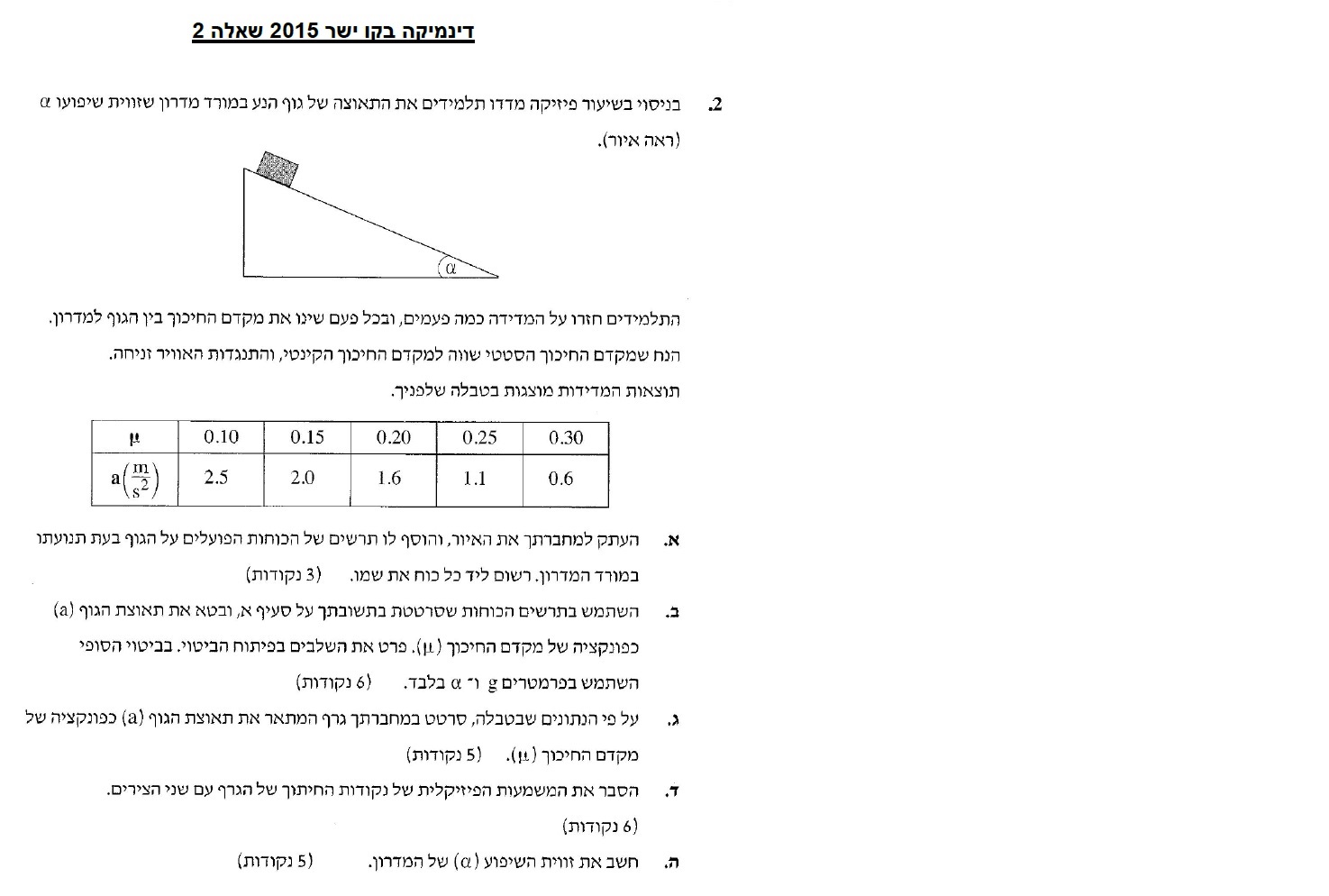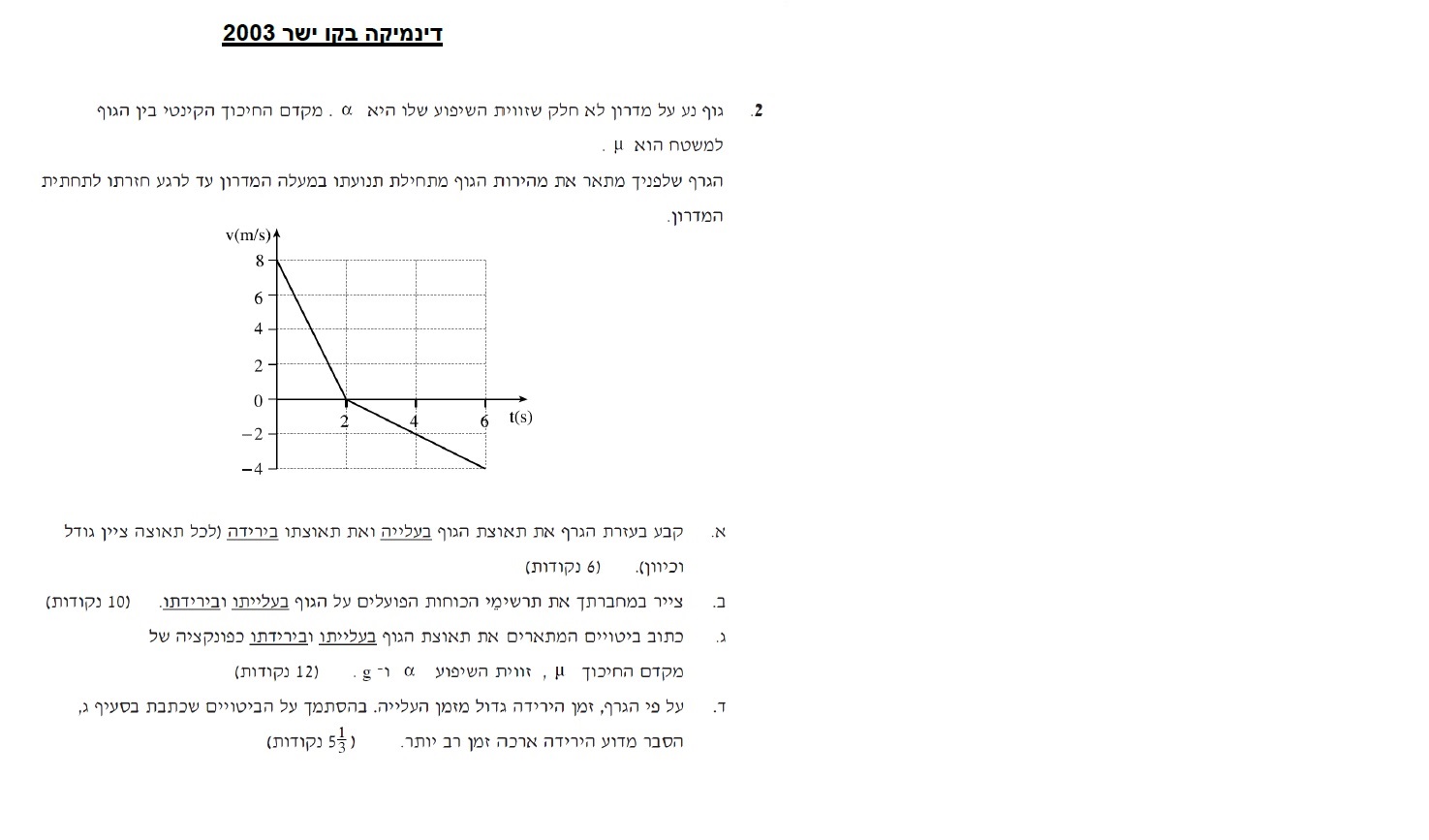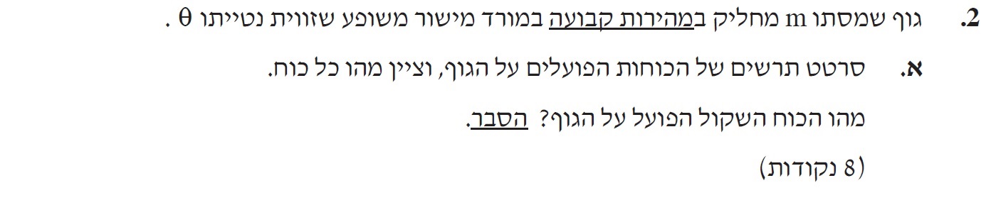 - 5. 2019,2- גוף נע על מישור משופע ומחובר לגוף תלוי