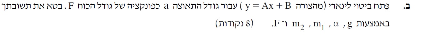נציב את כוח המתיחות ממשוואת התנועה האופקית של התיבה במשוואת התנועה של הסל :