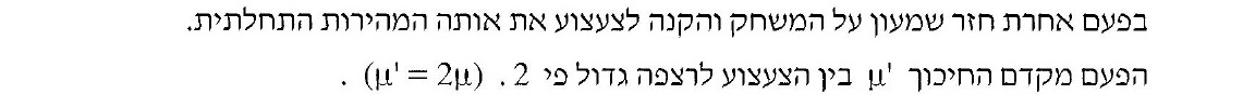 4. המהירות הממוצעת- לא תשתנה, המהירות הממוצעת נתונה לפי ממוצע חשבוני פשוט: