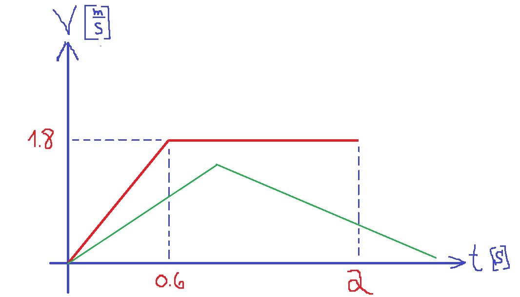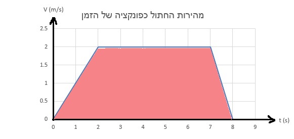 בגרף מהירות בתלות בזמן משמעות השטח התחום הוא העתק התנועה , לכן כדי למצוא את המרחק בין נקודה A לנקודה B , נחשב את השטח התחום בגרף: