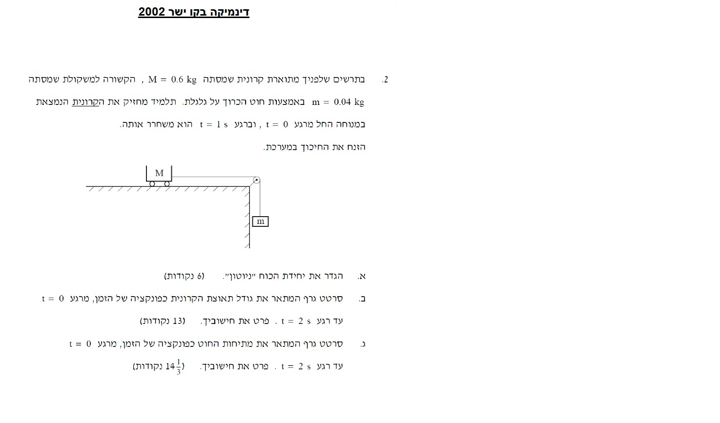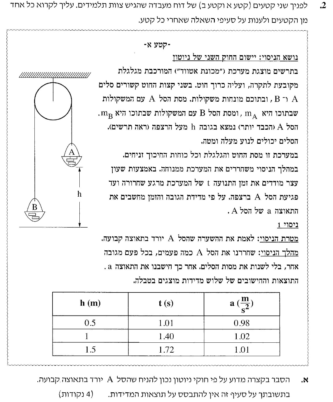 - 2. 2021,2-שני גופים מחוברים בחוט הכרוך על גלגלת.