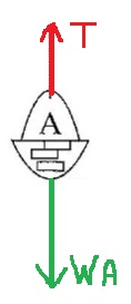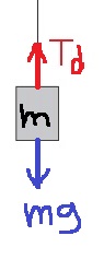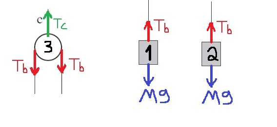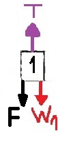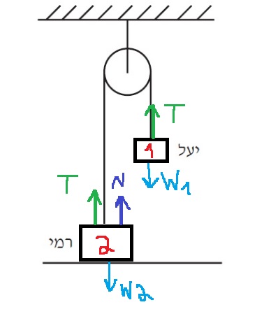 ברגע הפעלת הכוח F , המערכת מתחילה לנוע ממנוחה .הגוף התלוי נע ממנוחה כלפי מעלה, לכן כיוון שקול הכוחות הפועלים עליו הוא כלפי מעלה.