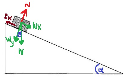 והגוף המונח על המישור המשופע נע ממנוחה בכיוון המורד , לכן כיוון שקול הכוחות הפועלים עליו הוא בכיוון המורד.