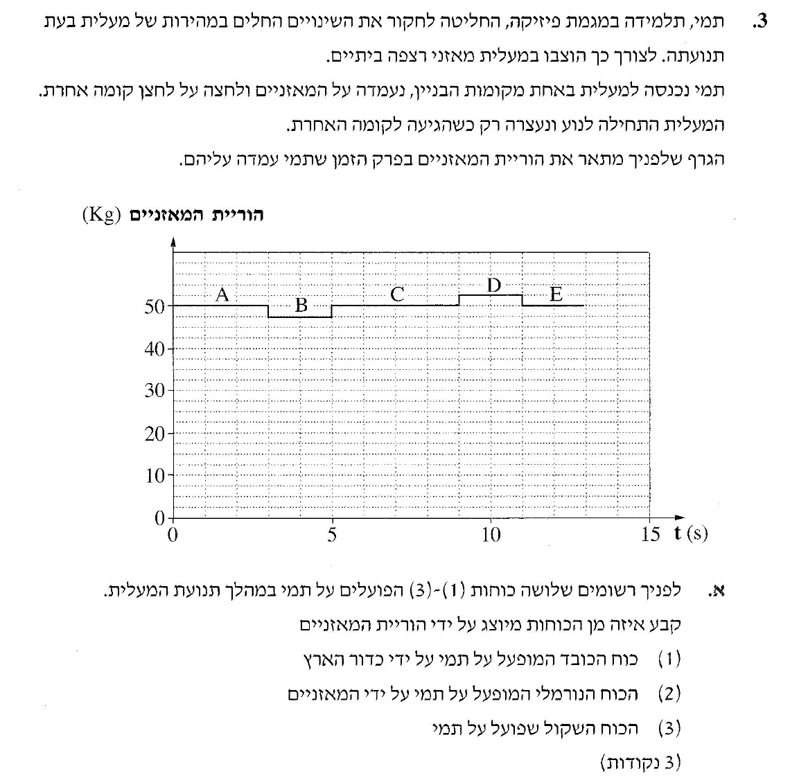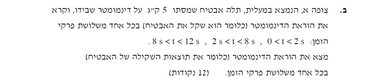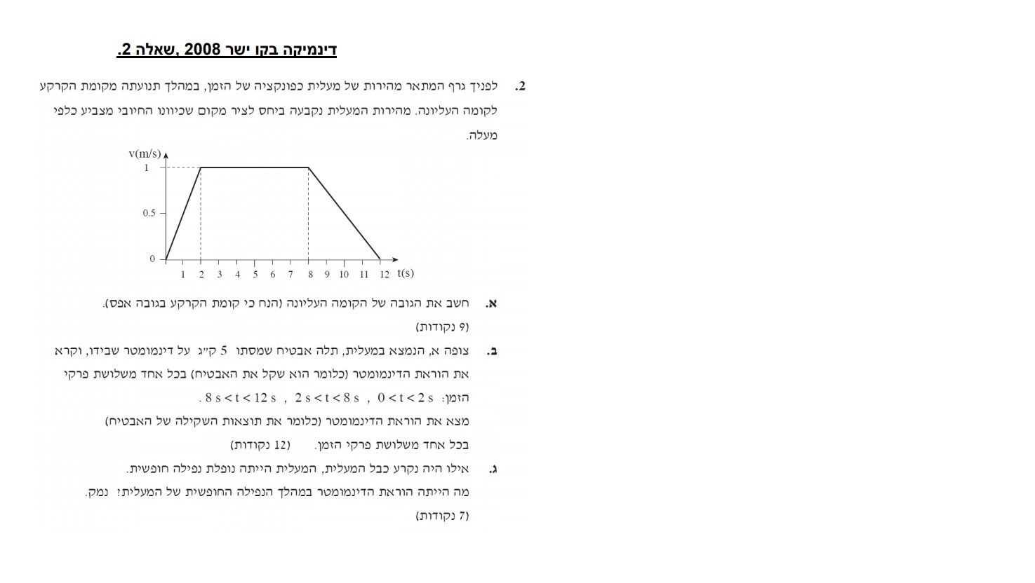 מכאן שהורית הדינמומטר לאחר קריעת כבל המעלית היא: אפס ניוטון.
