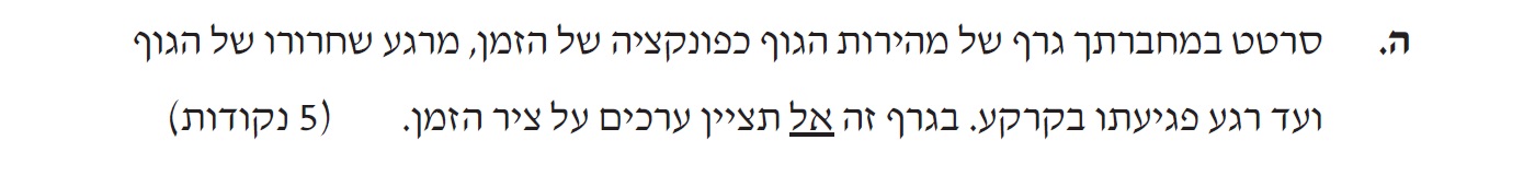 נשתמש בפונקציית מקום בתלות בזמן , המתאימה לתנועה בתאוצה קבועה: