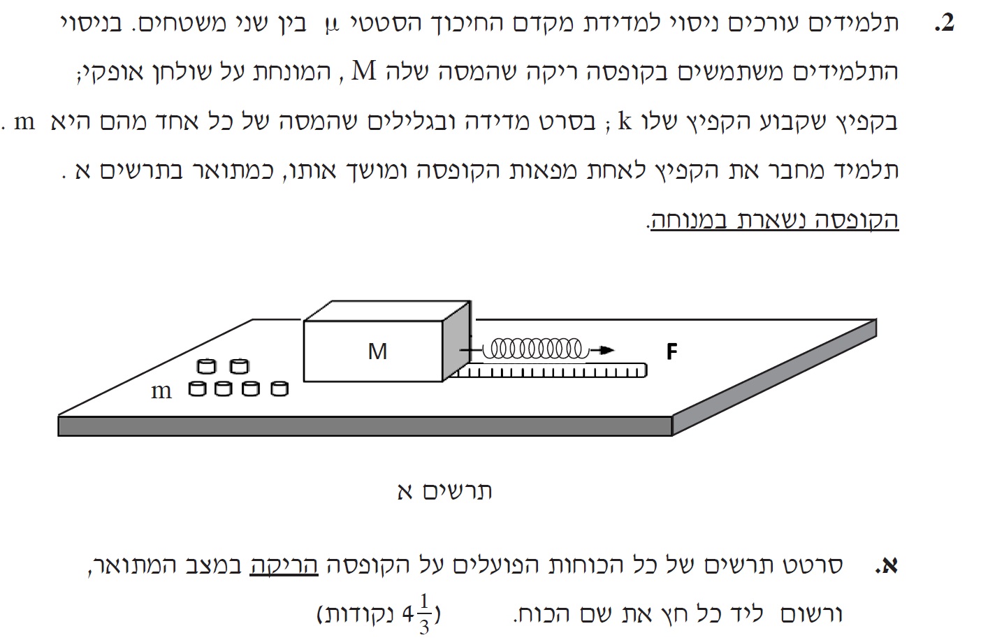כאשר משקל הסלסלה הוא 6 ניוטון , התיבה מחליקה על השולחן , ופועל כוח חיכוך קינטי.