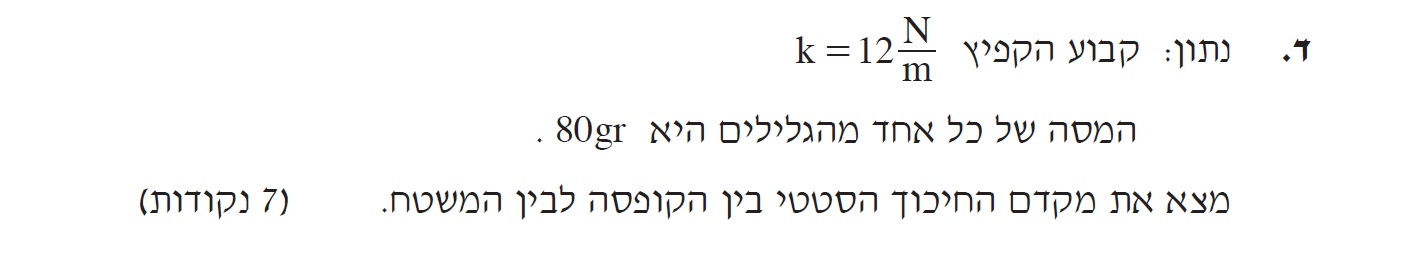 וביטוי כוח המתיחות כאשר המערכת לא זזה ,בגלל החיכוך הסטטי הוא: