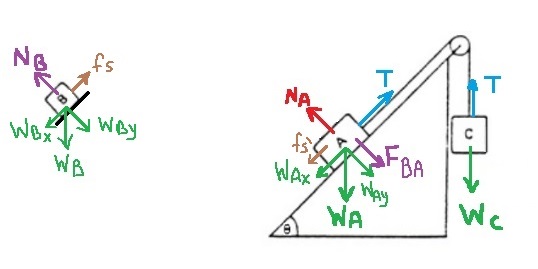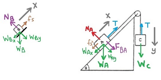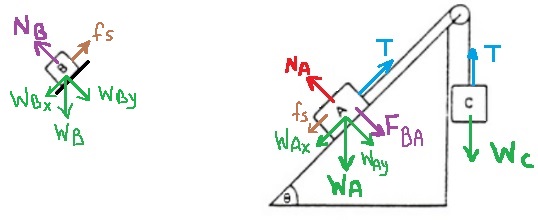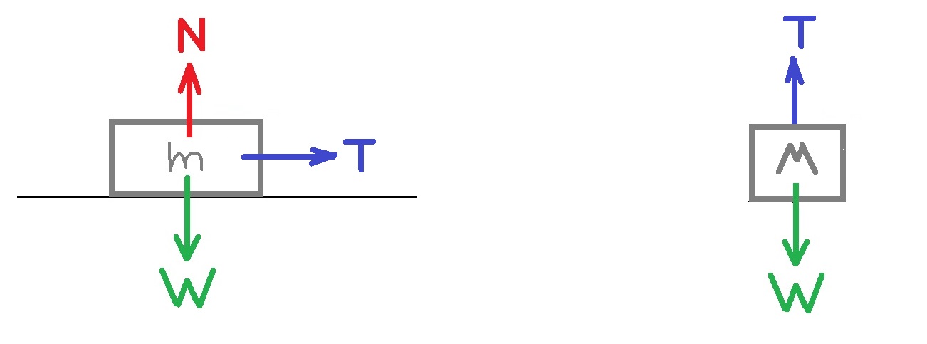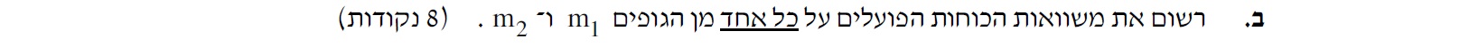 נערוך תרשים כוחות לכוחות הפועלים על הגופים: