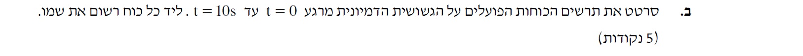 נערוך תרשים כוחות ונכתוב את משוואות התנועה למצב זה: