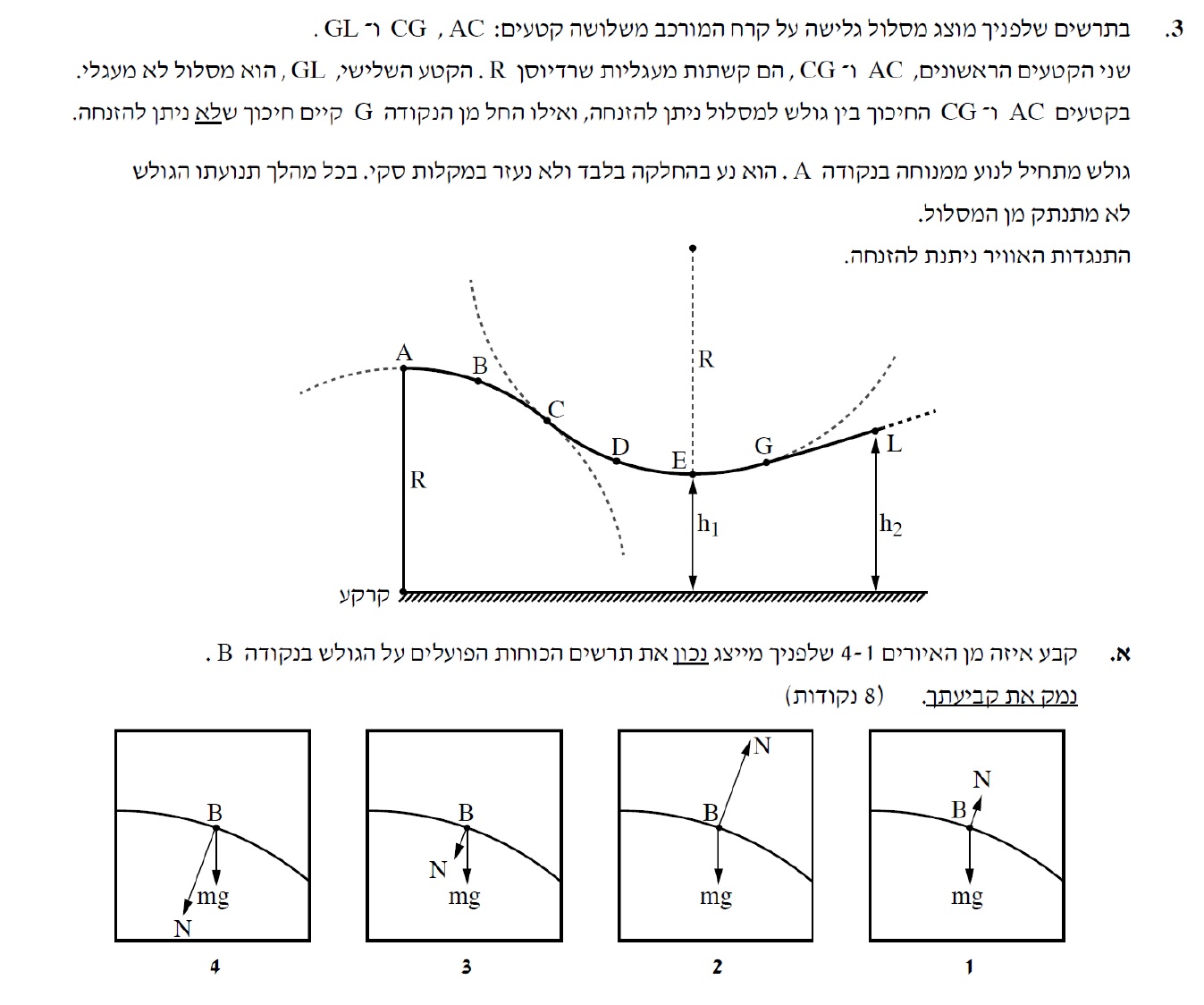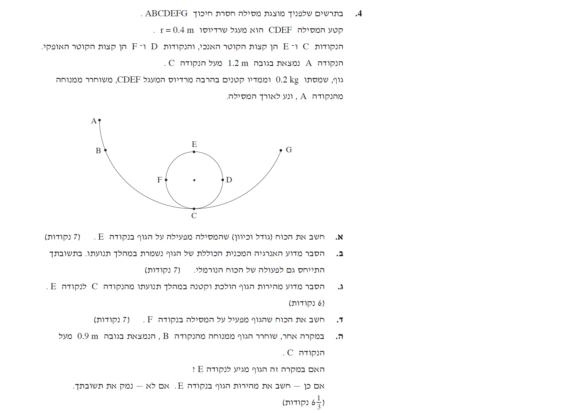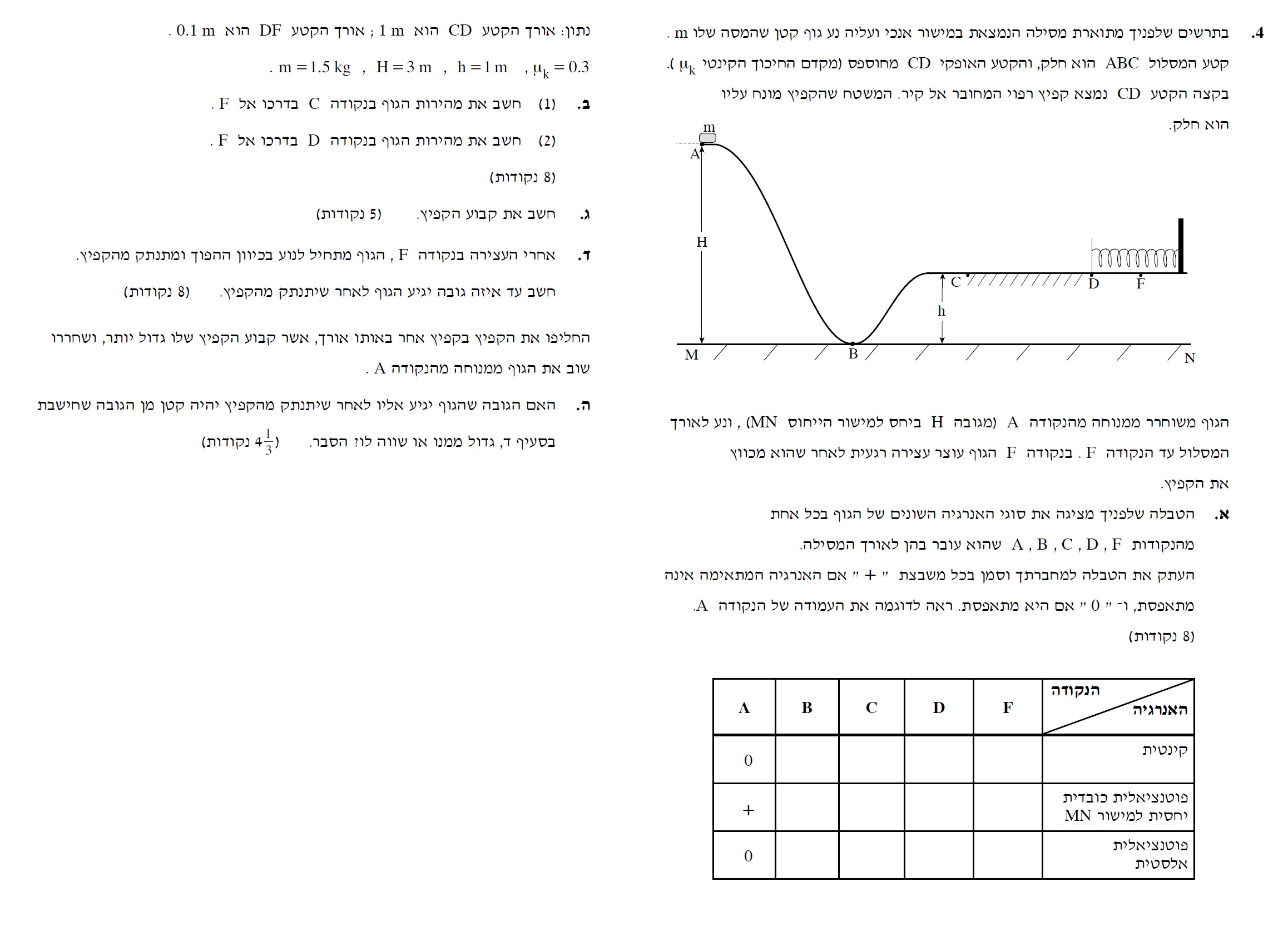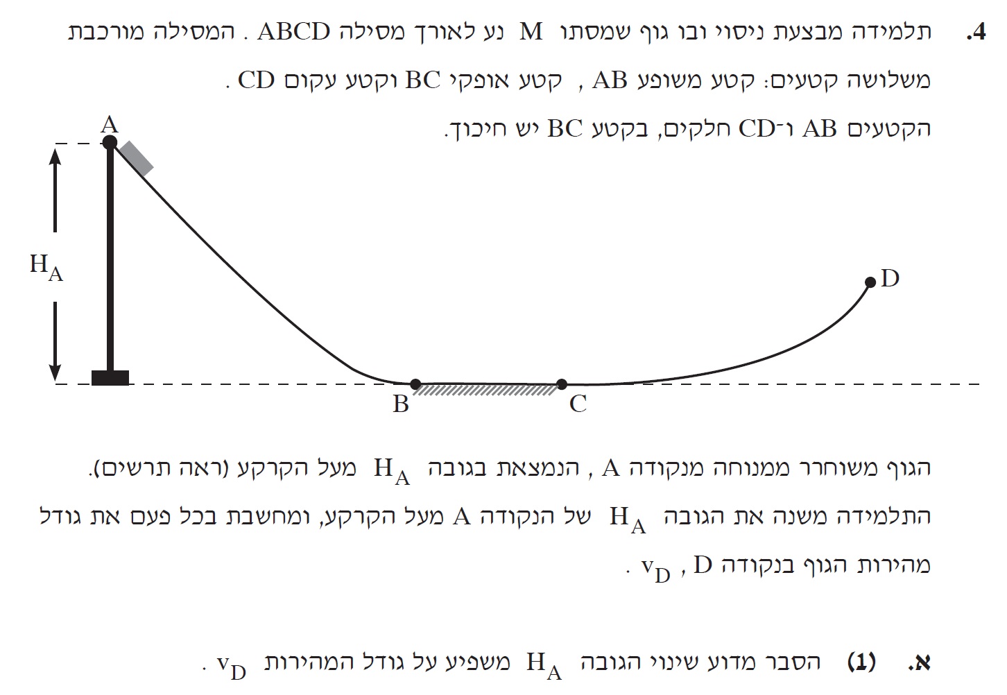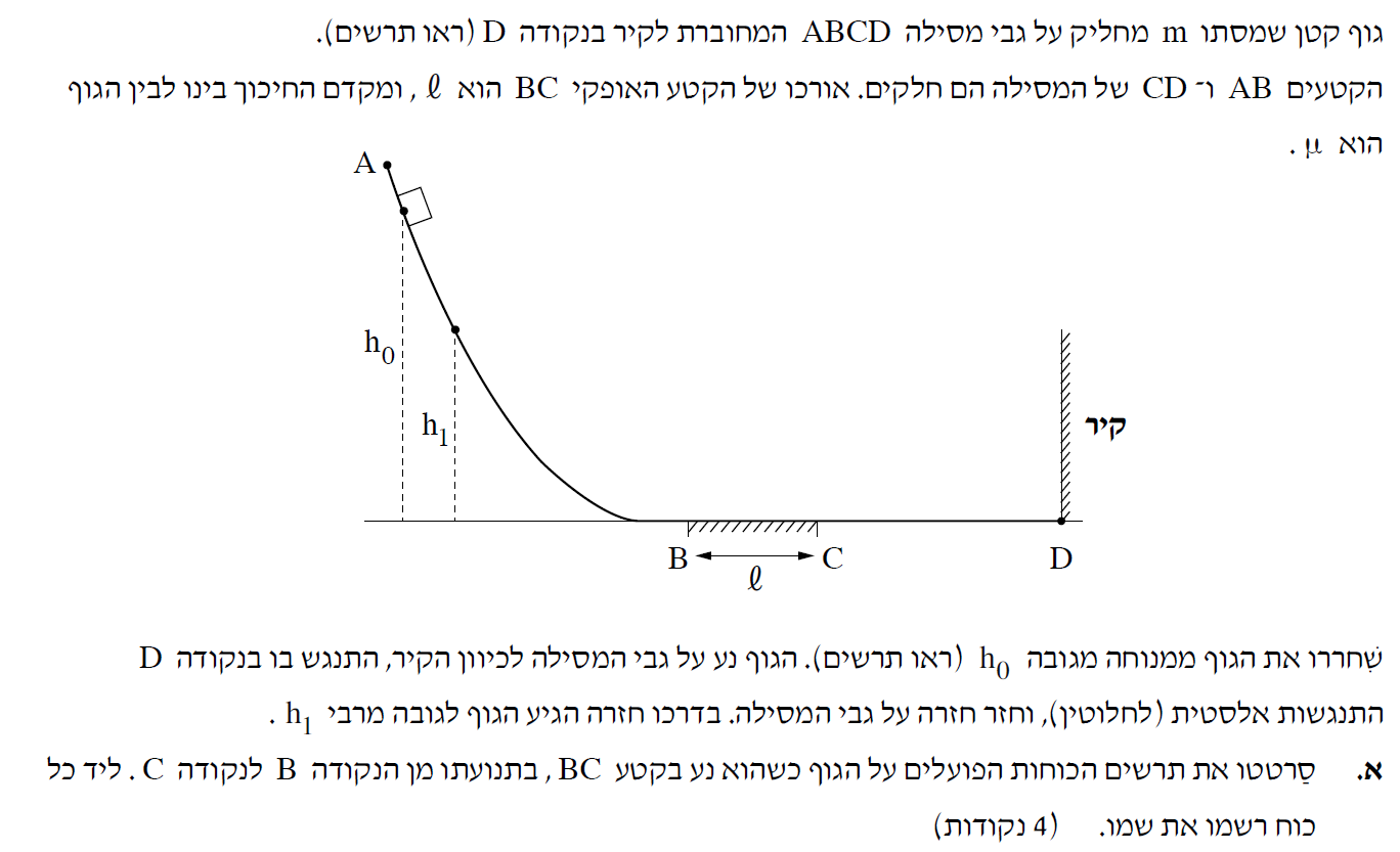 2023,4- גוף נע במורד מסילה אנכית, עם קטע לא חלק ,הלוך ושוב.