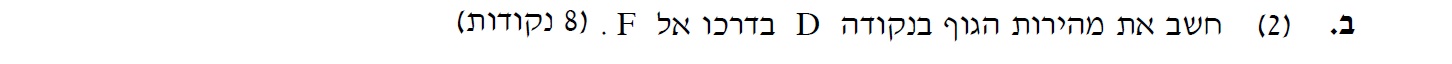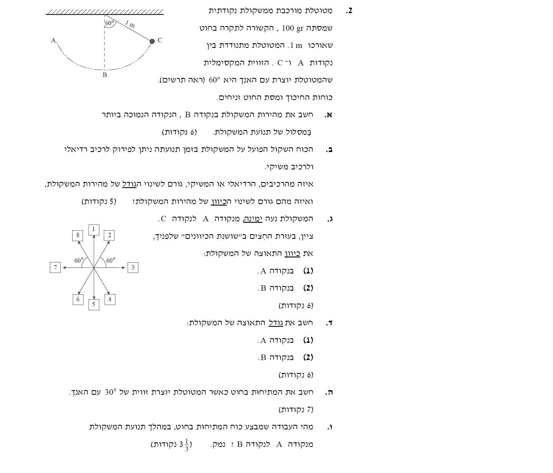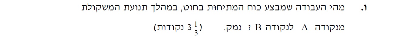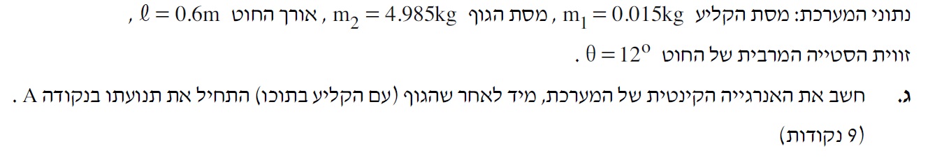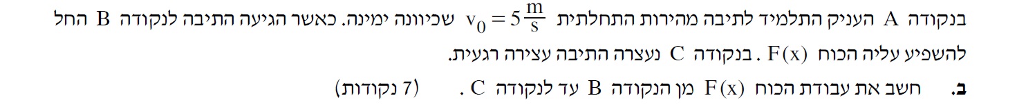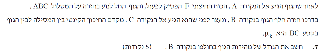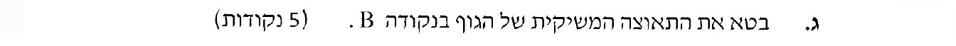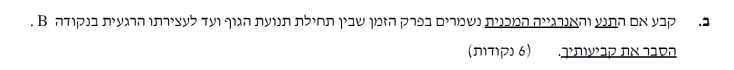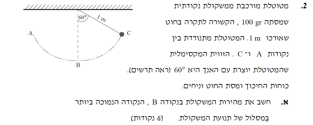 לכן , גודל מהירות המשקולת בנקודה B הוא 3.16 מטר לשנייה , כיוון תנועת המשקולת בנקודה זו הוא שמאלה כאשר הגוף נע מנקודה C לנקודה A.