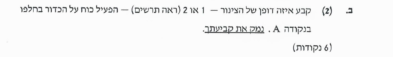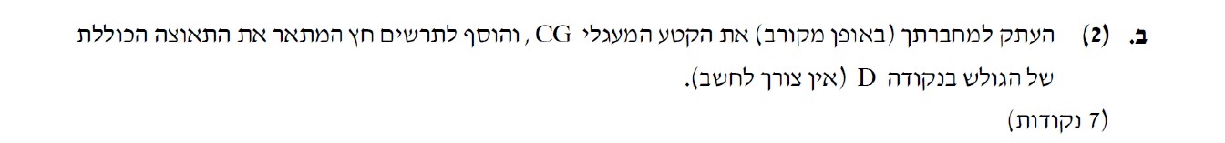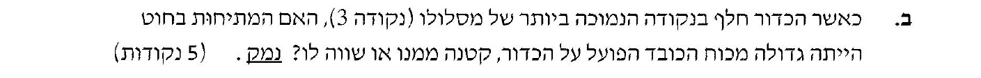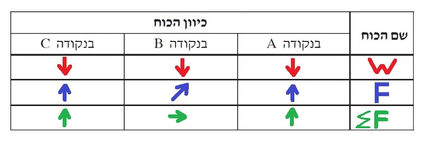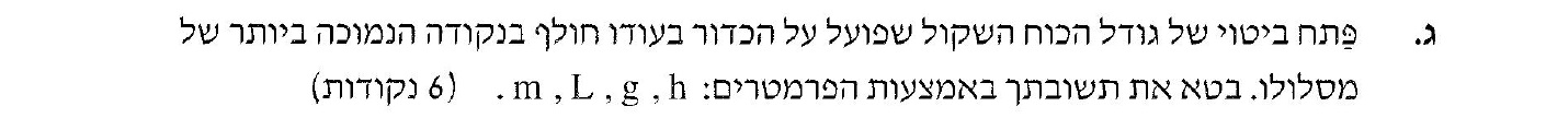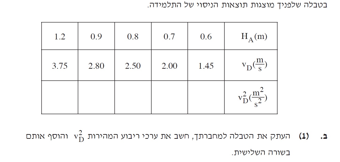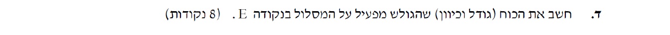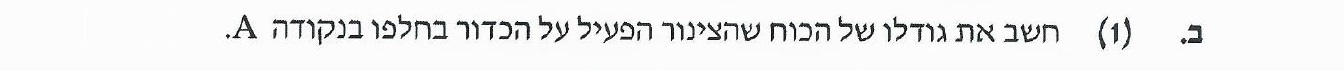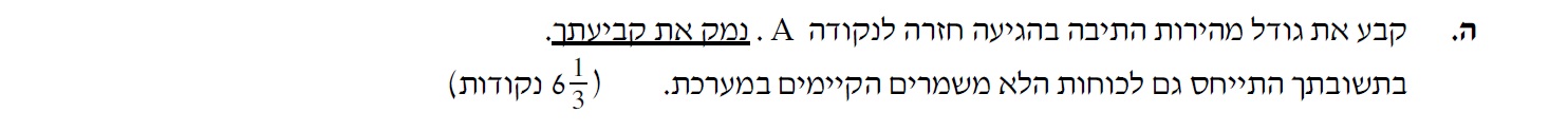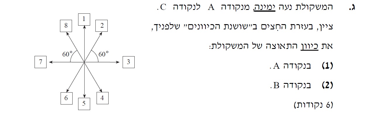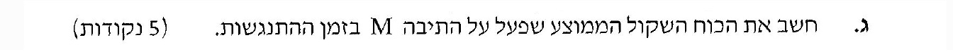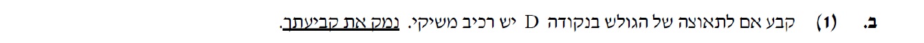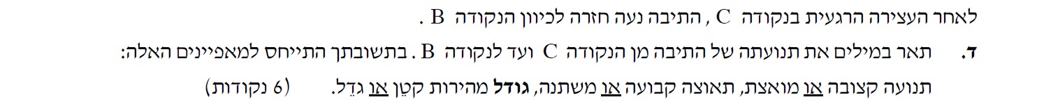 לכן , גודל מהירות המשקולת בנקודה B הוא 3.16 מטר לשנייה , כיוון תנועת המשקולת בנקודה זו הוא שמאלה כאשר הגוף נע מנקודה C לנקודה A.