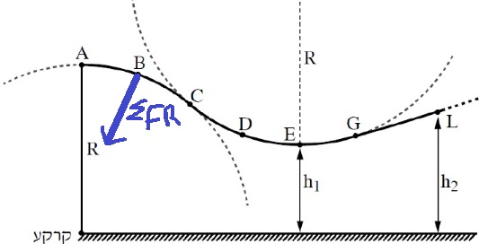 2. נערוך תרשים כוחות , לכוחות הפועלים על הגוף כאשר הוא נמצא בנקודה B: