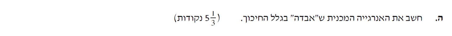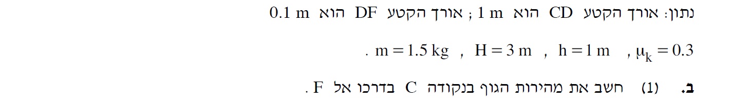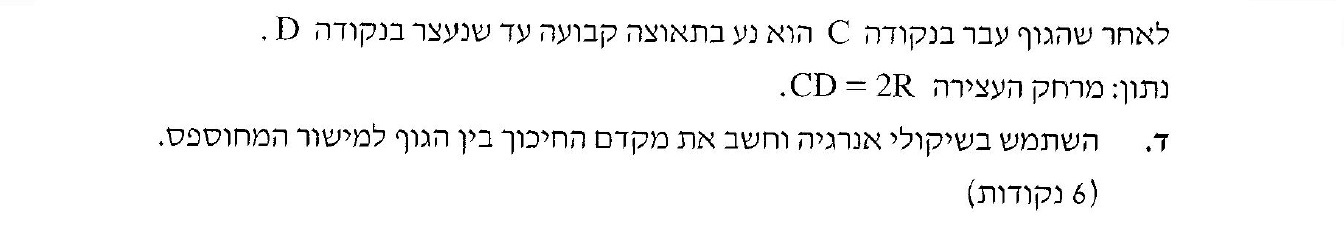 נכתוב את משוואת שימור האנרגיה , נשווה בין האנרגיה המכנית הכוללת בנקודה C לאנרגיה המכנית הכוללת בנקודה B.