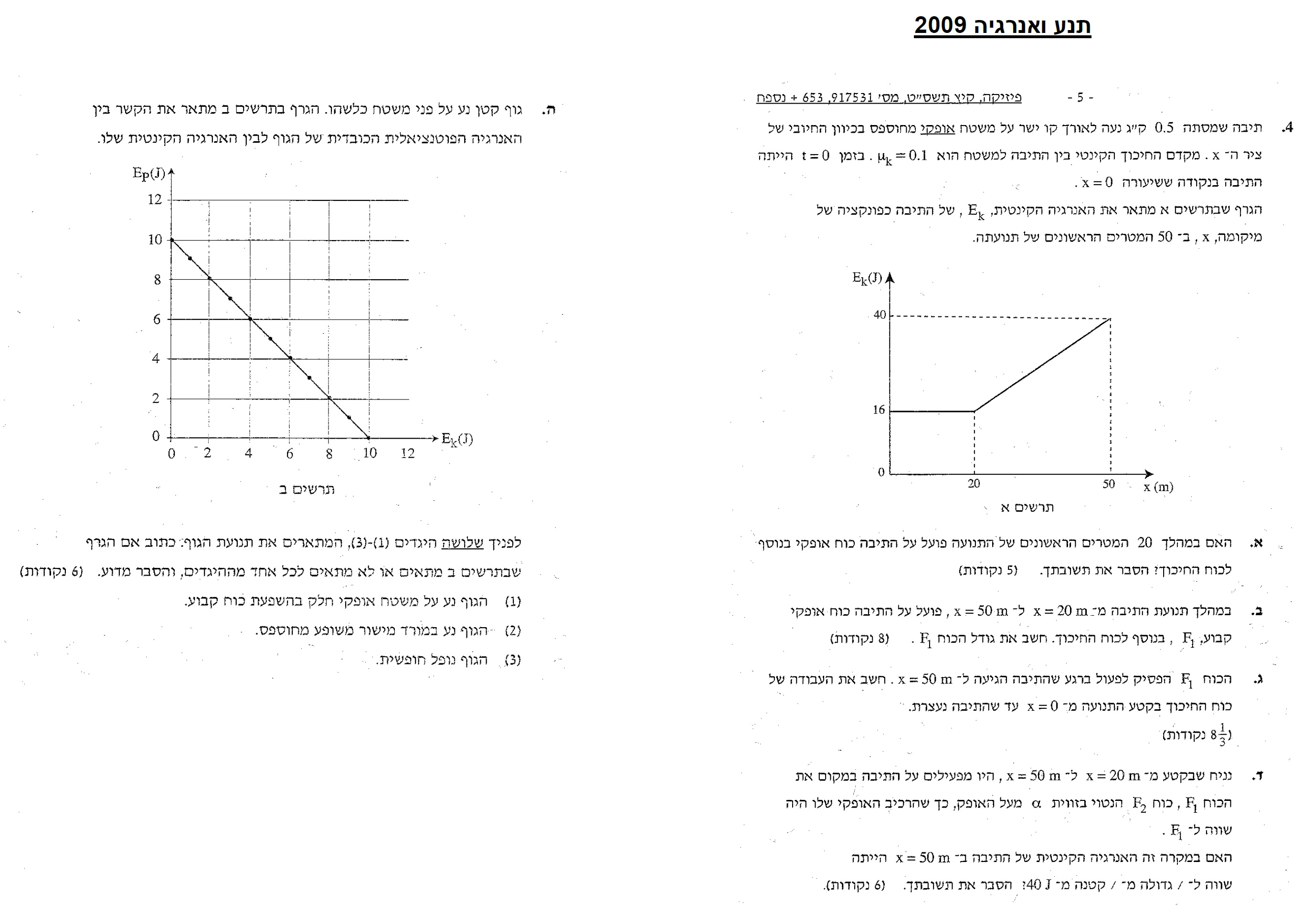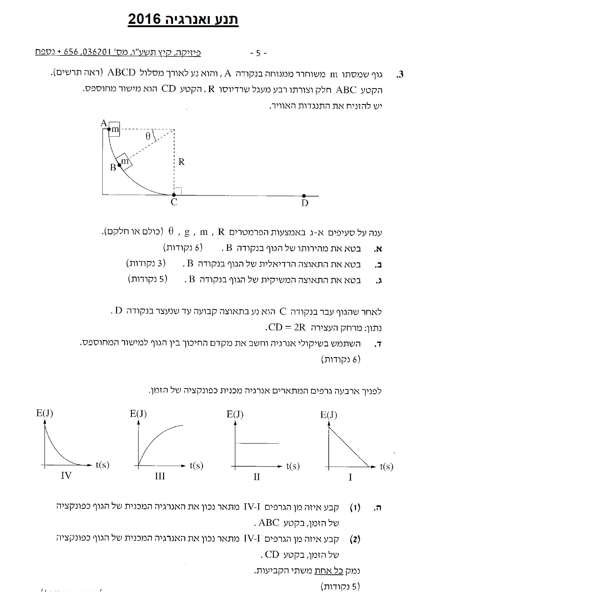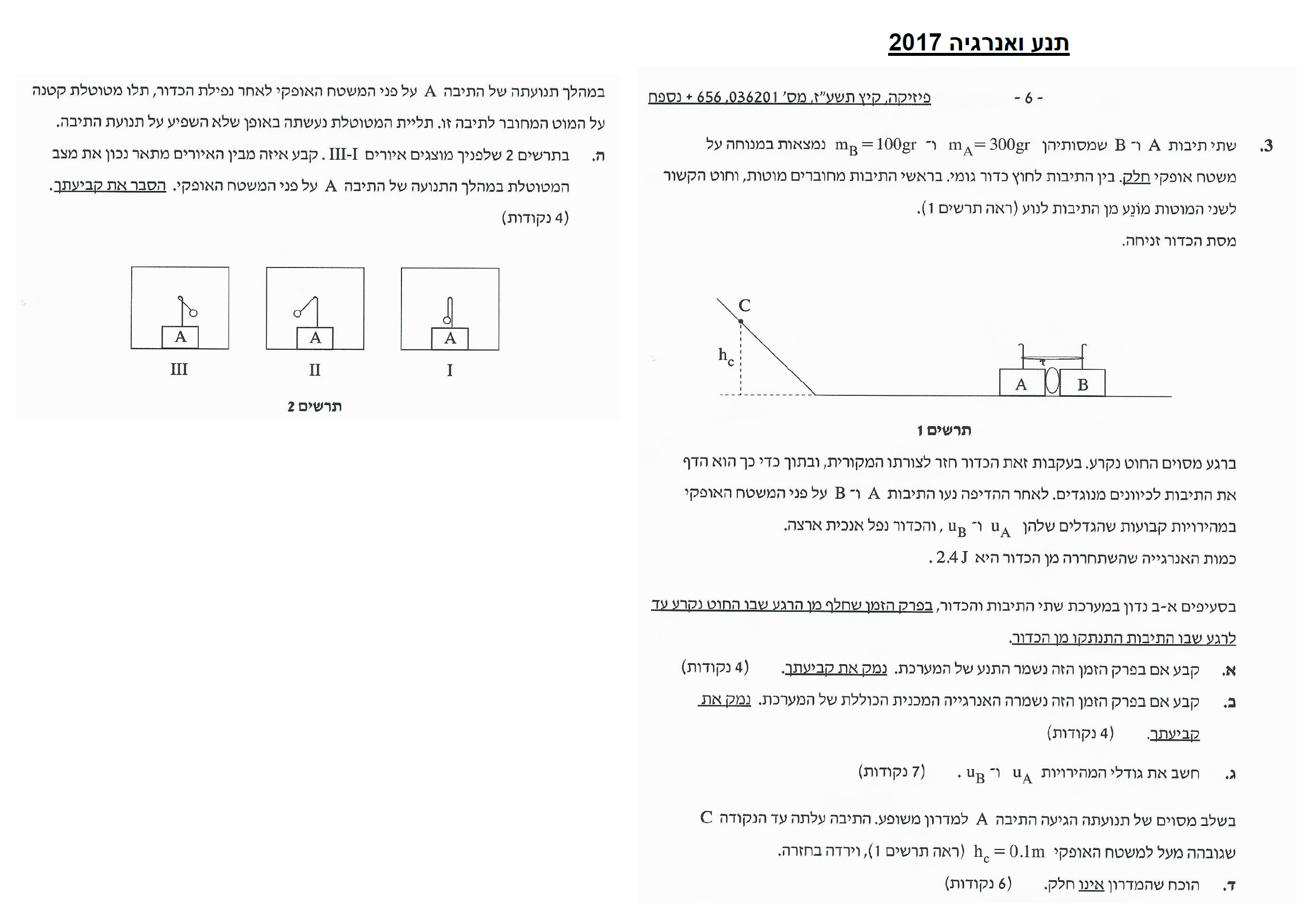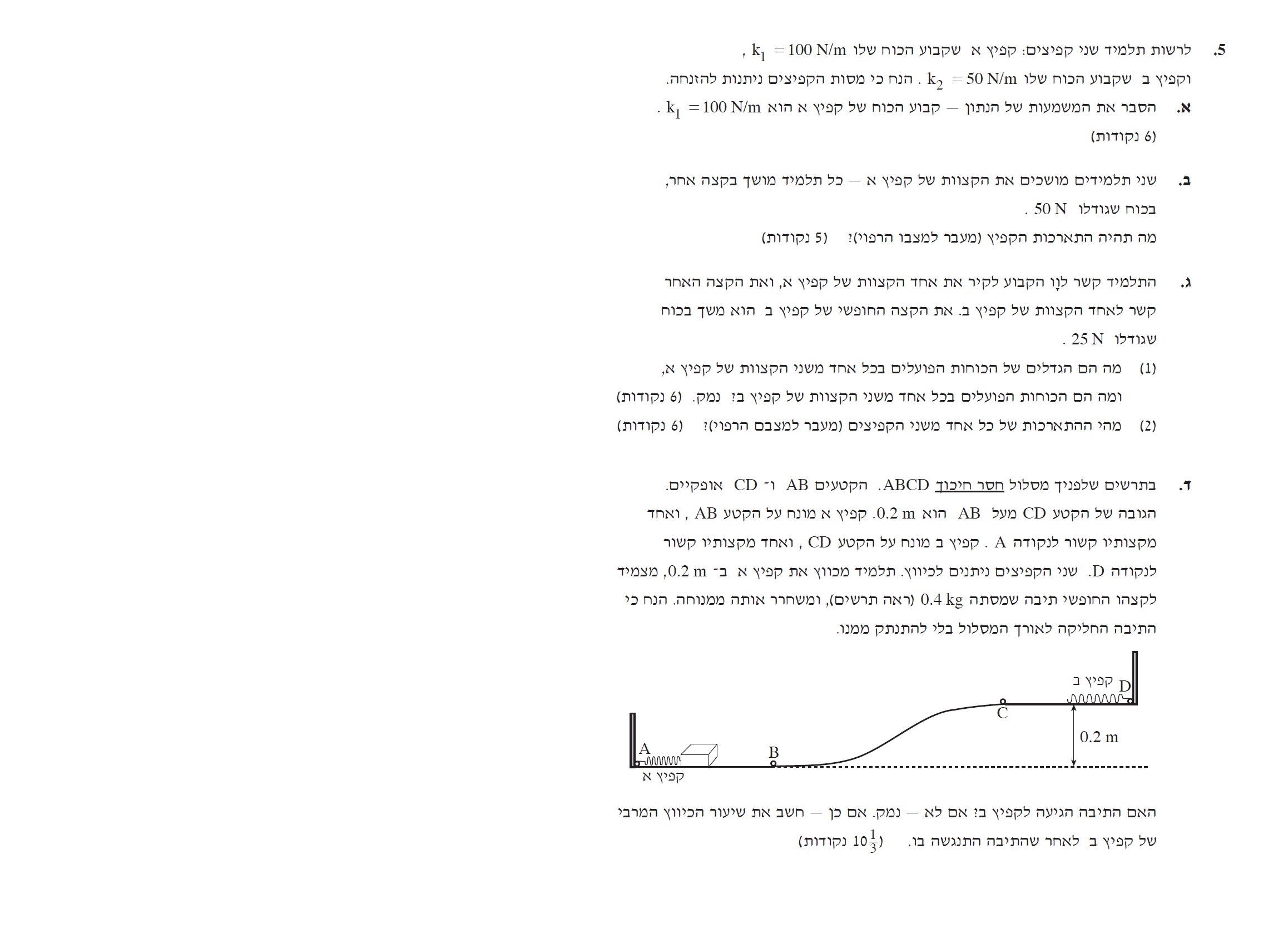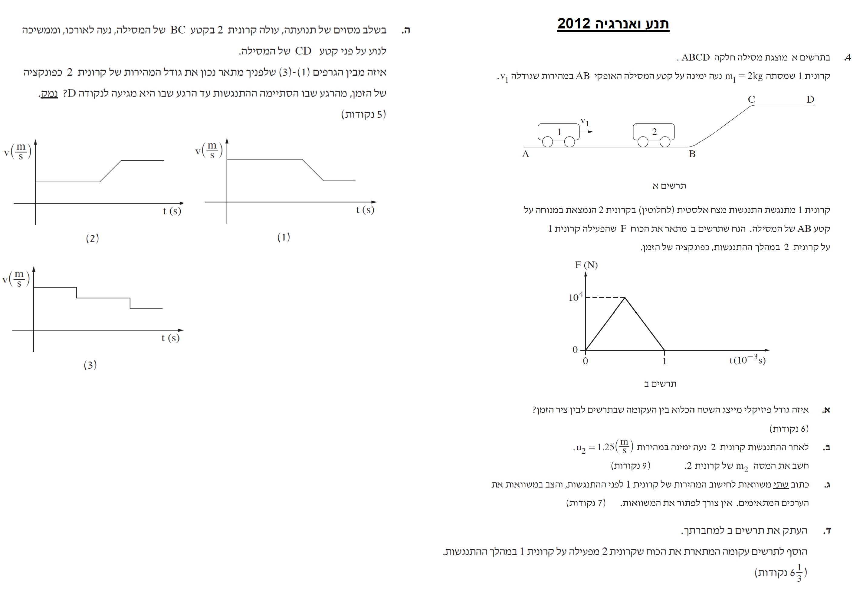 - 1. קובץ שאלות בגרות אנרגיה ושימורה
