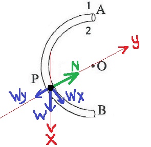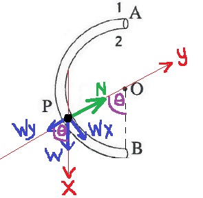 נכתוב את משוואות התנועה . נבחר ציר X לכיוון המשיקי , וציר Y לכיוון הרדיאלי: