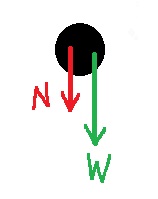 ביטוי זה מתאר את כוח הנורמל שמפעיל החיישן(המסילה) על הכדור ('N). מהחוק השלישי של ניוטון כוח זה שווה בגודלו לכוח שהכדור מפעיל על החיישן('N).