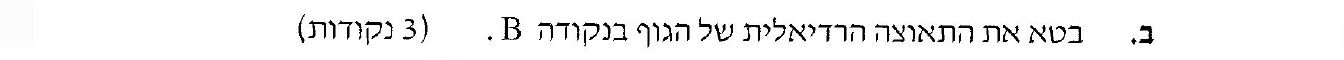 את המהירות בנקודה B מצאנו בסעיף א', נציב אותה בביטוי התאוצה הרדיאלית :
