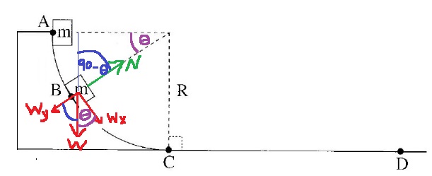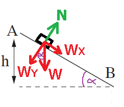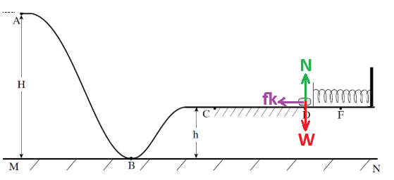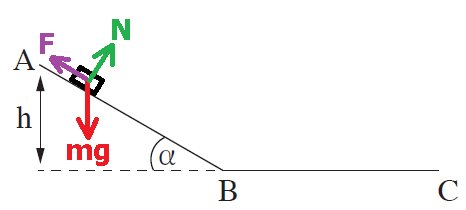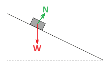 נתון שהמסילה חלקה לא פועל כוח חיכוך ,על הגוף פועלים רק שני כוחות , כוח הנורמל וכוח הכובד. כוח הנורמל פועל בניצב לתנועה מהגדרת העבודה הוא לא עושה עבודה.