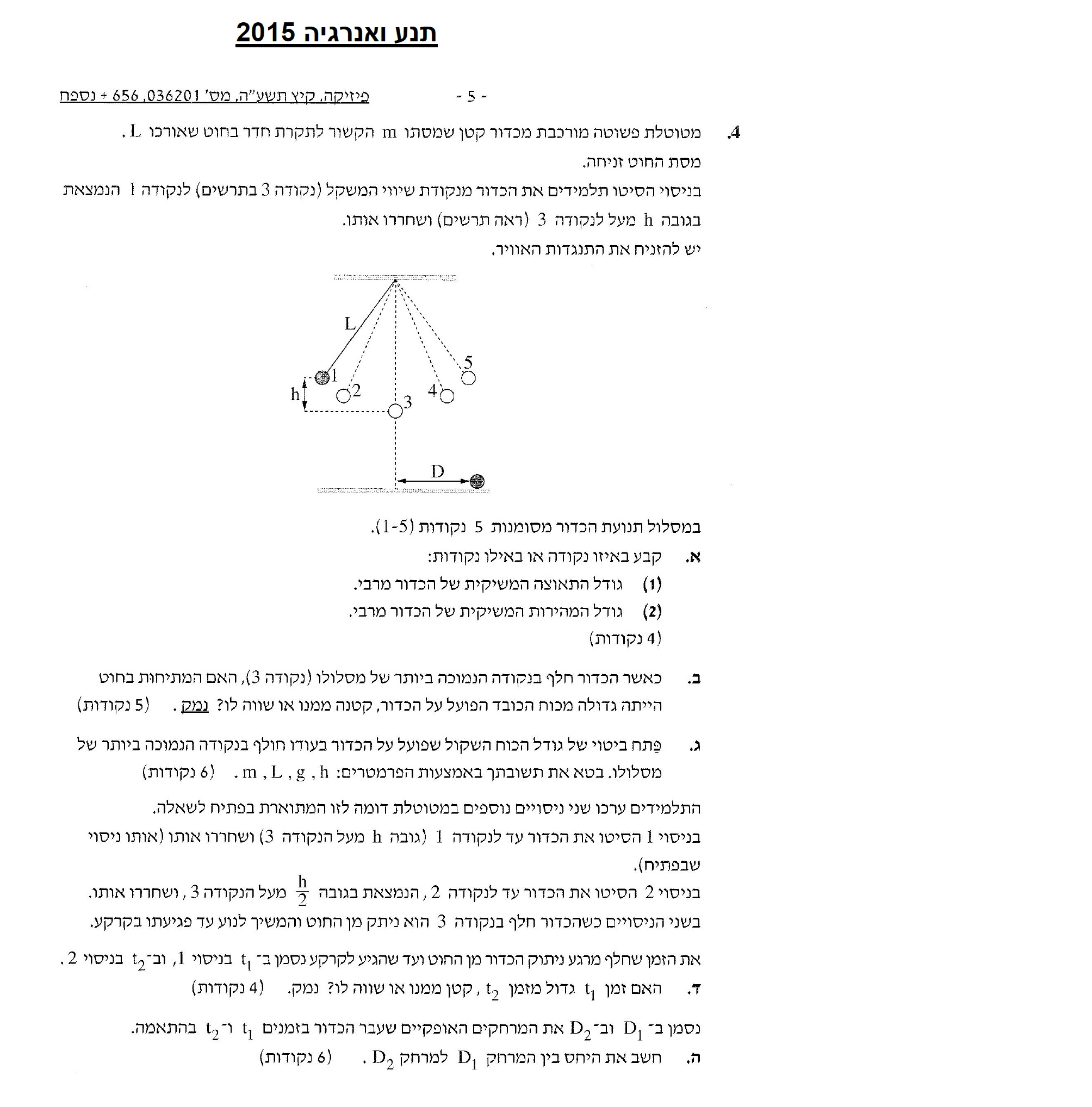 - 16. 2015,4- מטוטלת וזריקה אופקית
