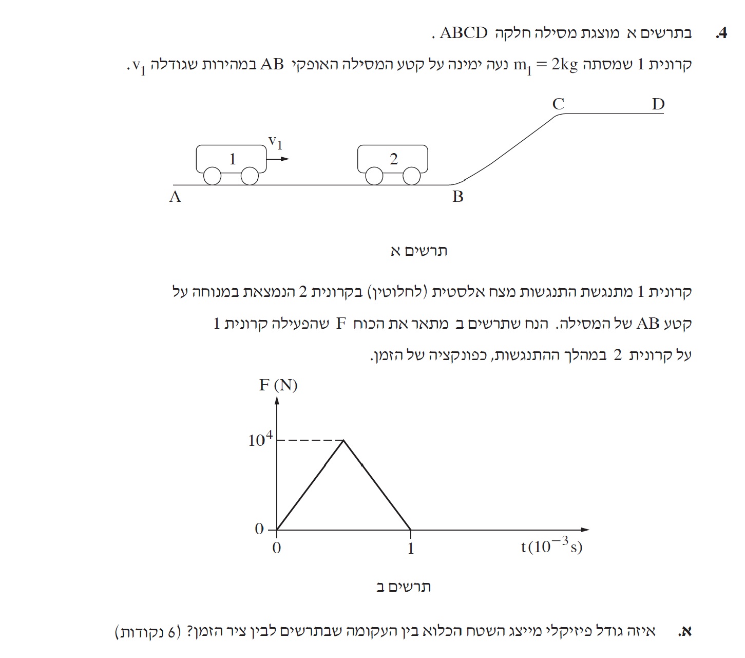 2021,5- שתי קרוניות ומישור משופע.(שאלה משנת 2012)