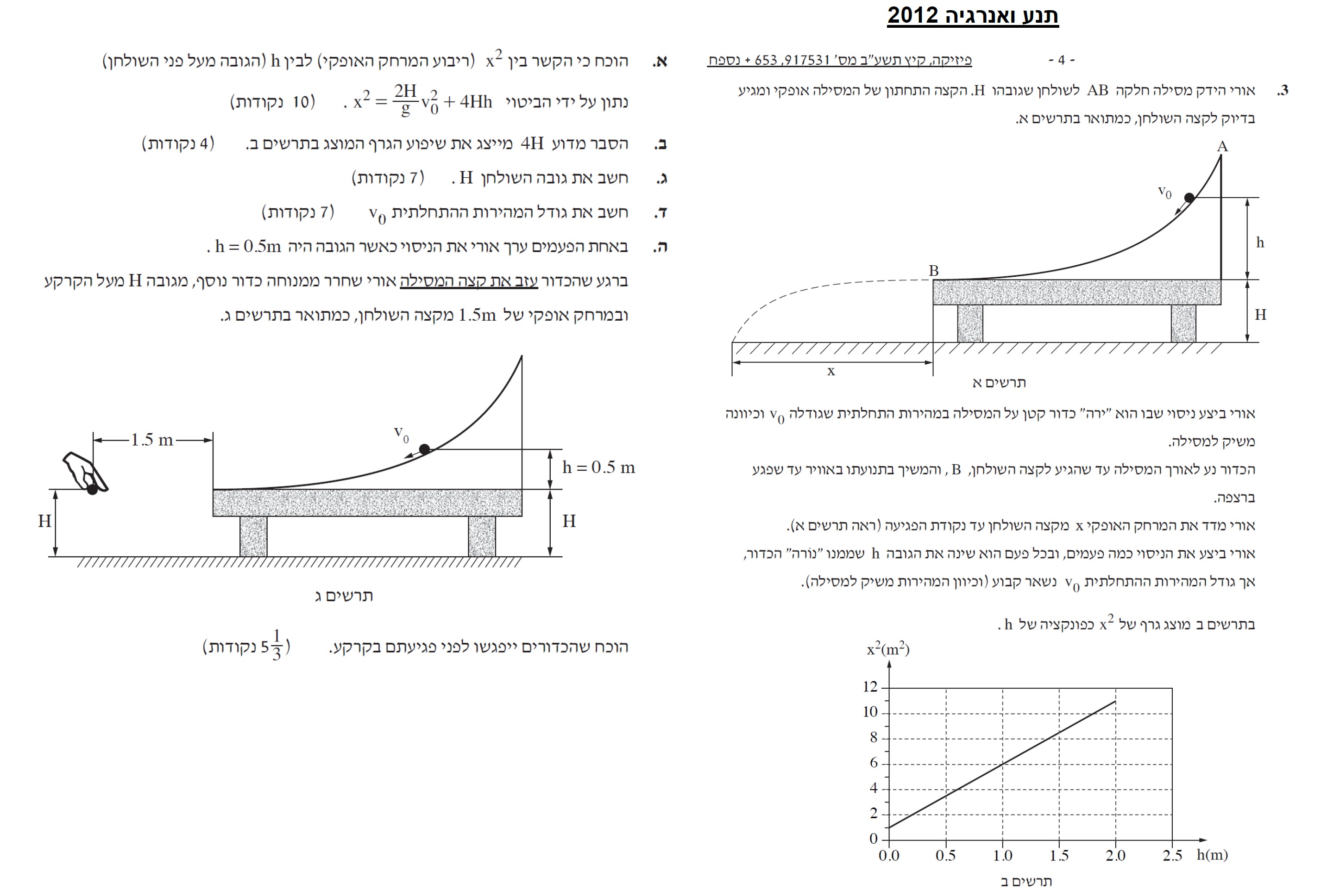 - 2012,3מסילה אנכית וזריקה אופקית.