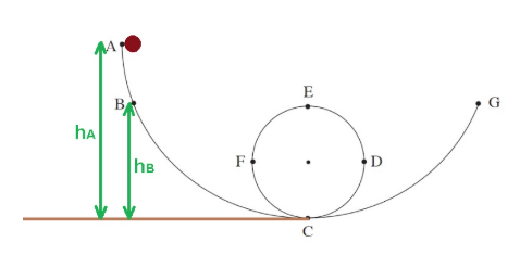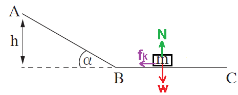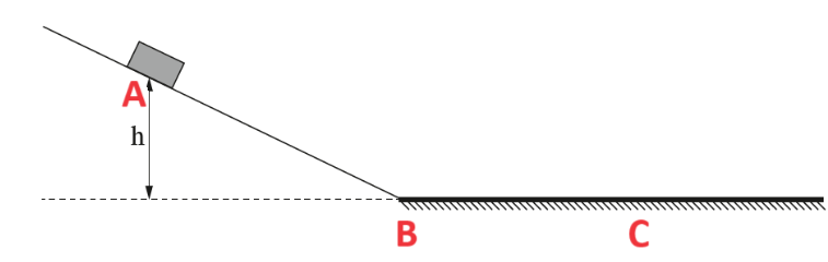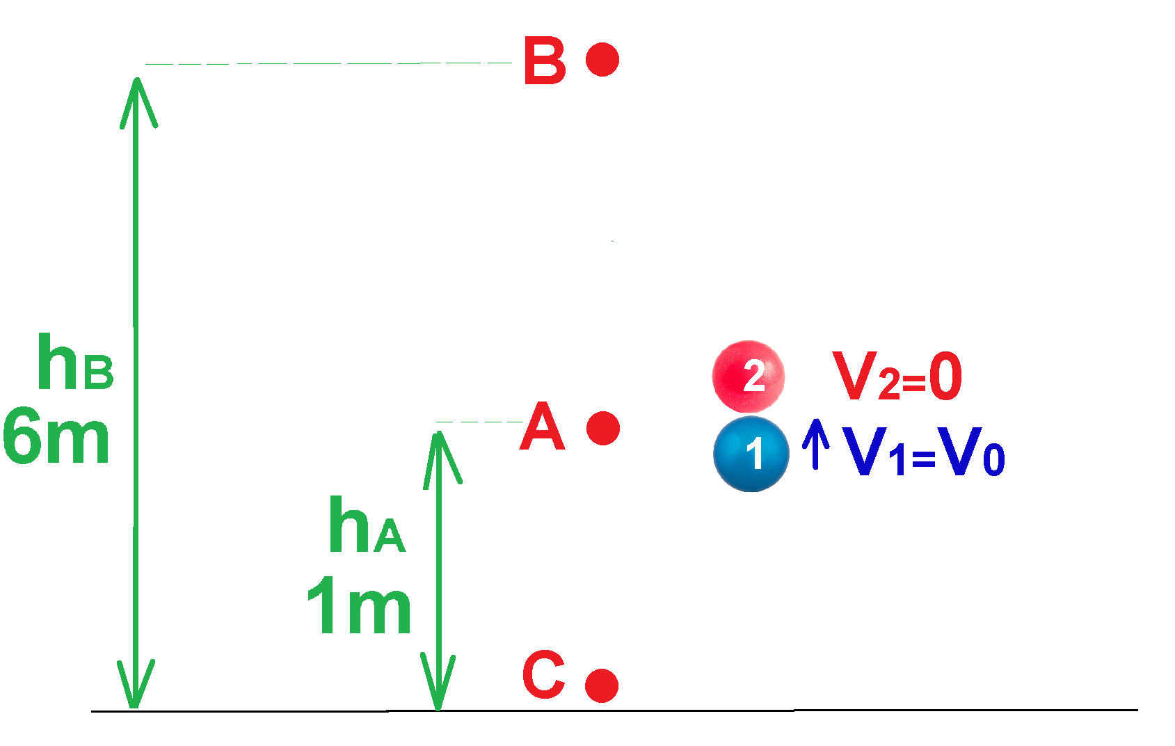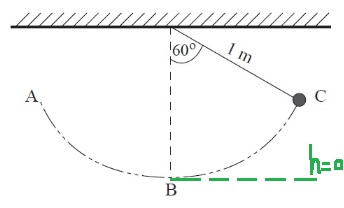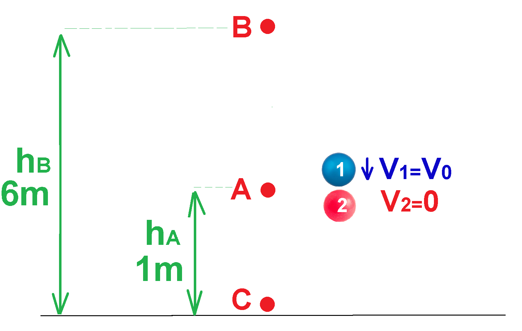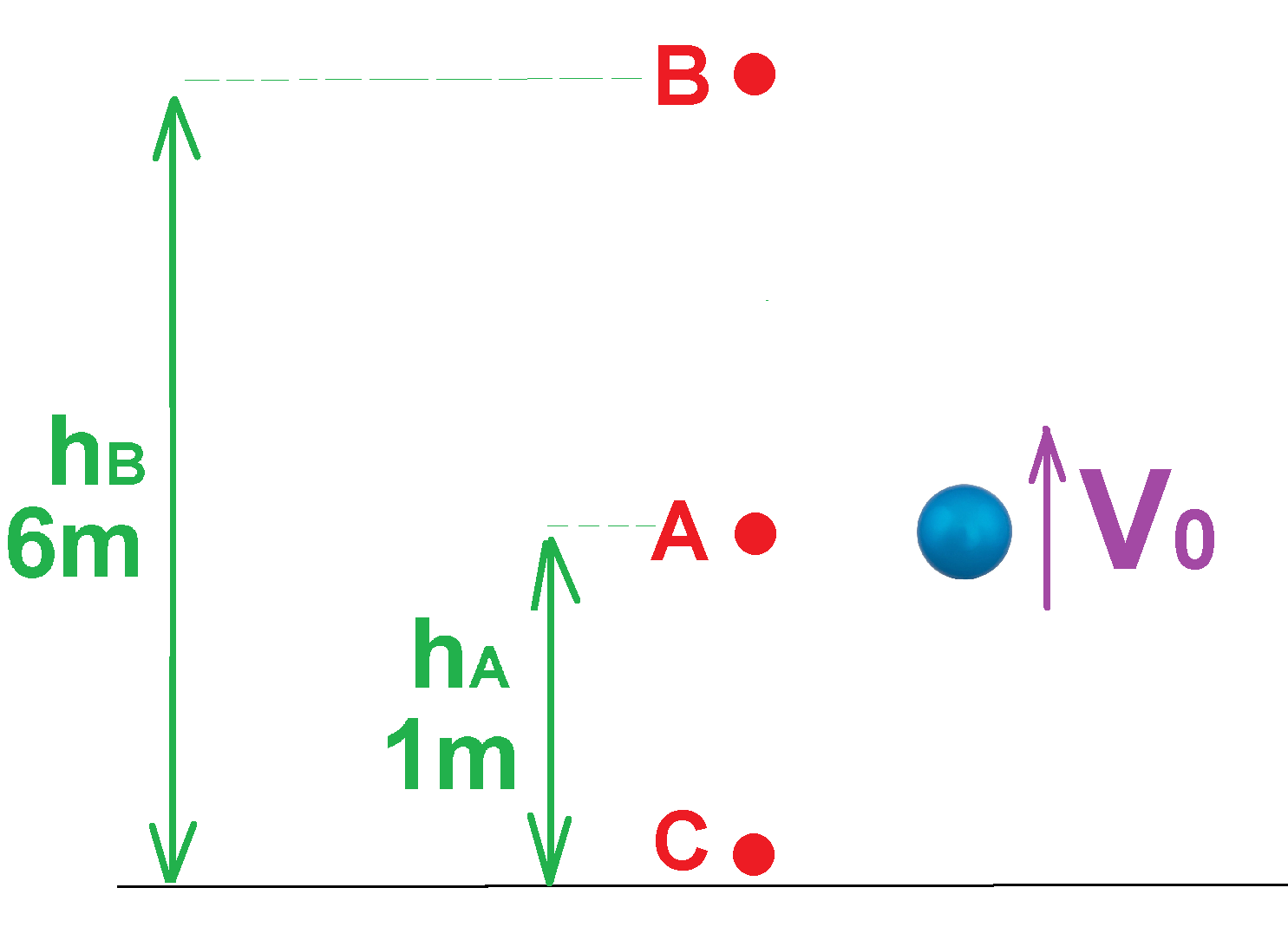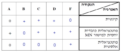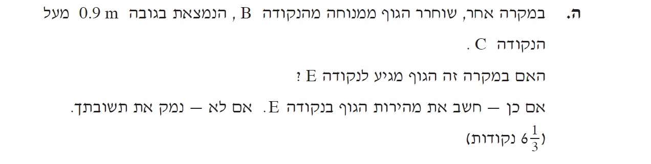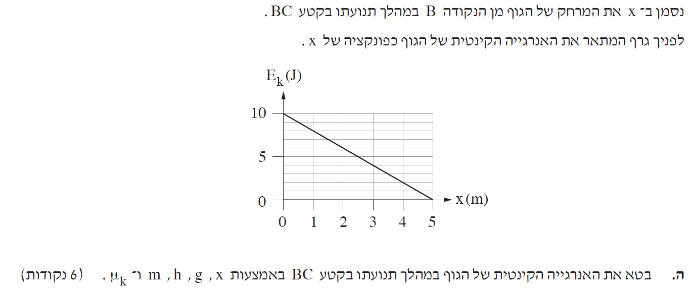 בנקודה C הגוף במנוחה , אין אנרגיה קינטית בנקודה C . הנקודה B נמצאת בגובה אפס ביחס למישור הייחוס.