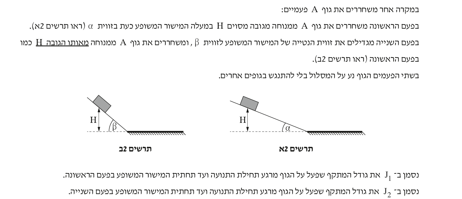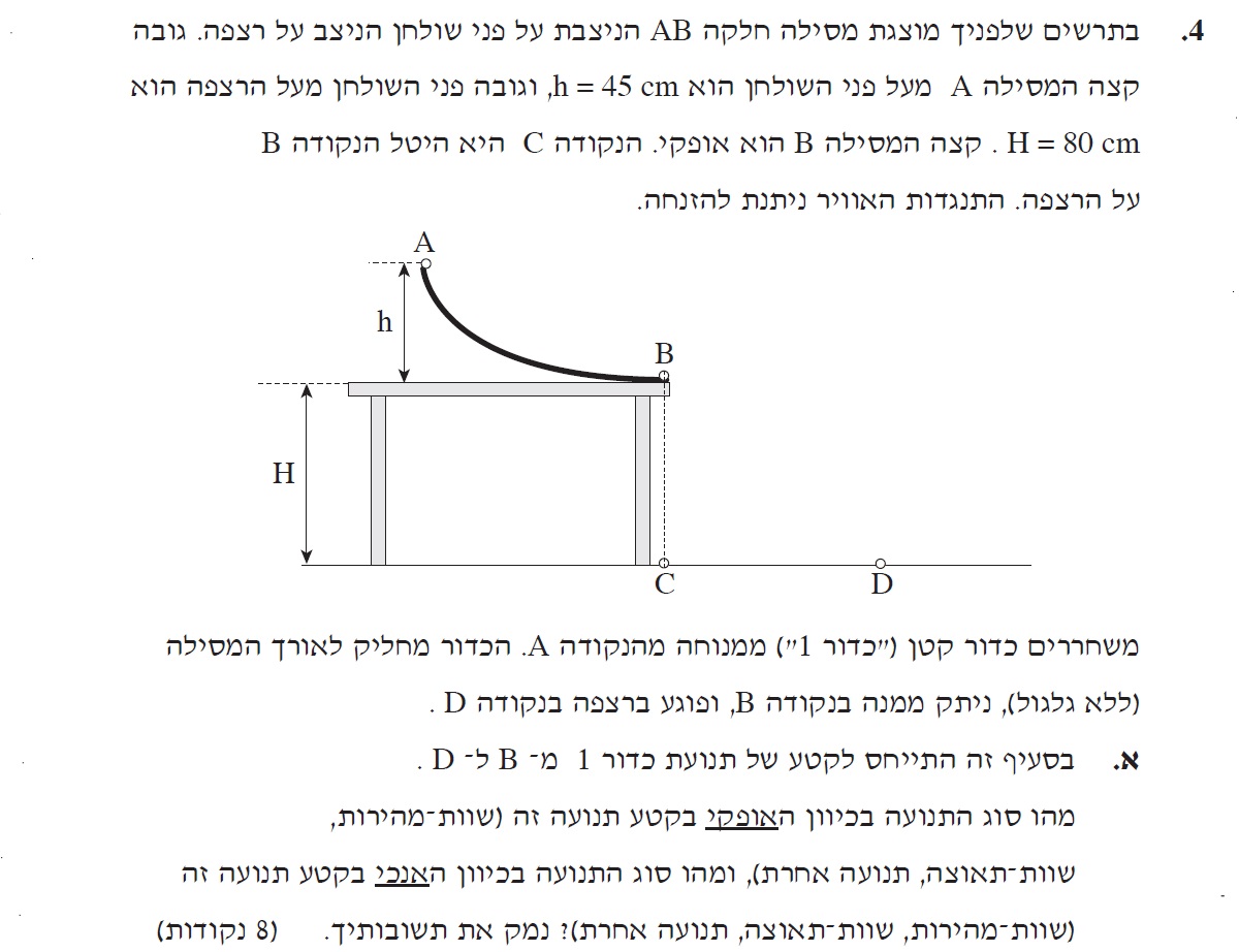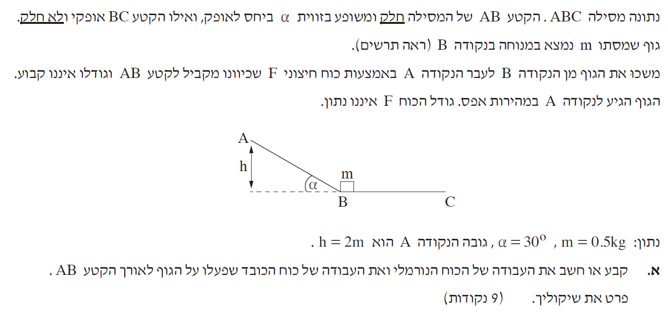 2021,4- גוף נע במורד מישור משופע חלק וממשיך לנוע על מישור אופקי לא חלק