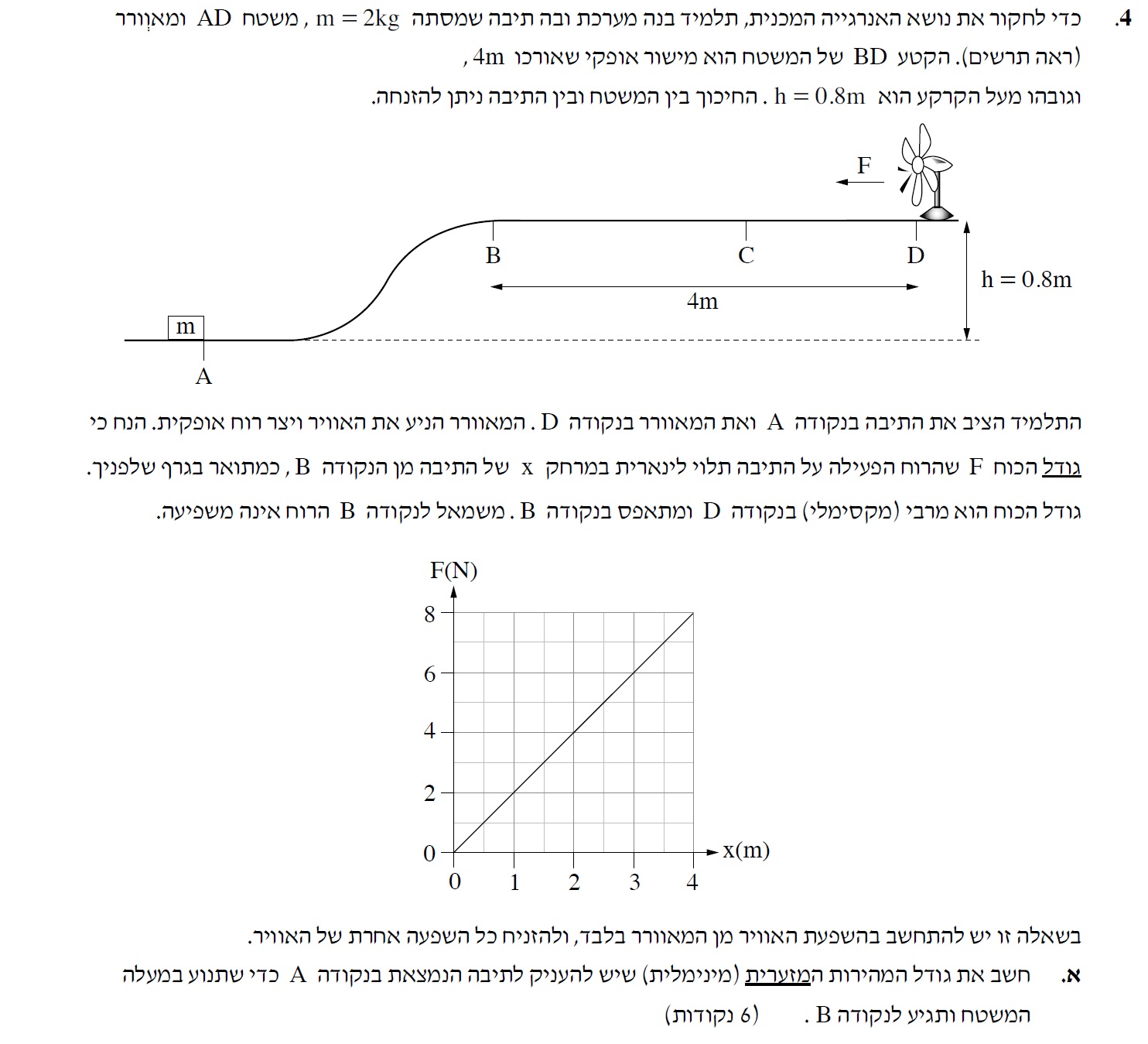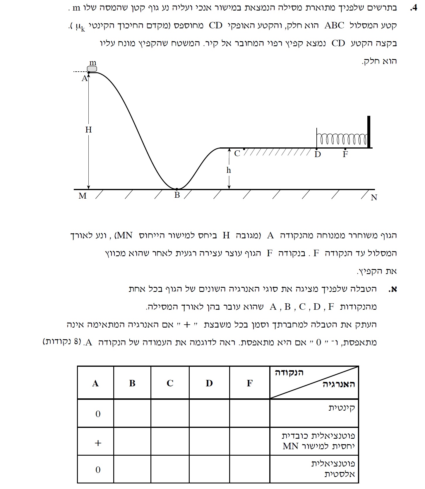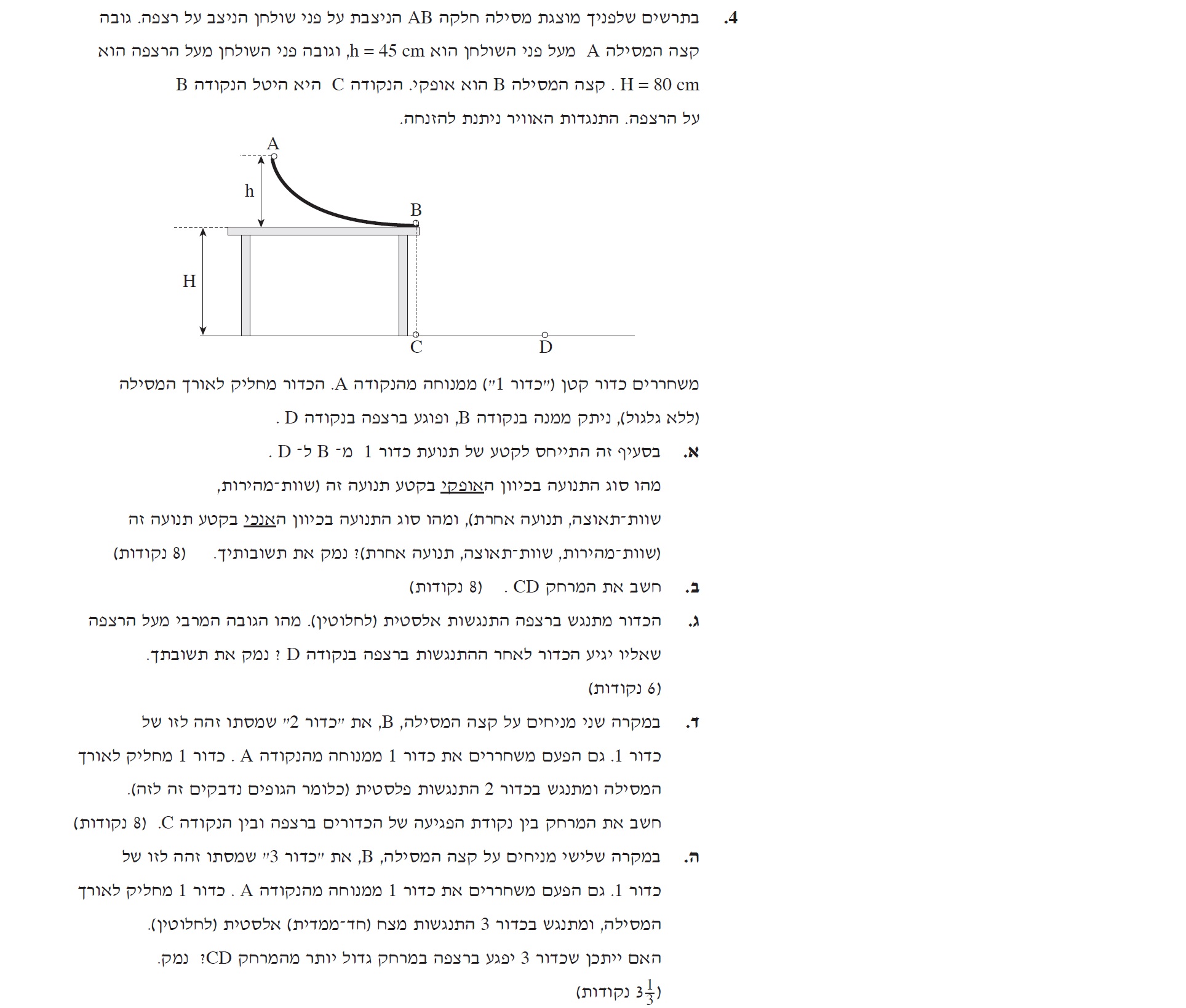 2021,4- גוף נע במורד מישור משופע חלק וממשיך לנוע על מישור אופקי לא חלק