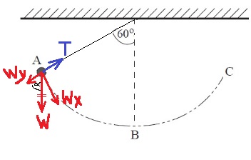1. נערוך תרשים כוחות לכוחות הפועלים על הגוף כאשר הוא נמצא בנקודה A .