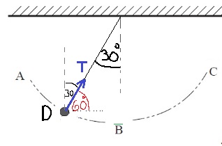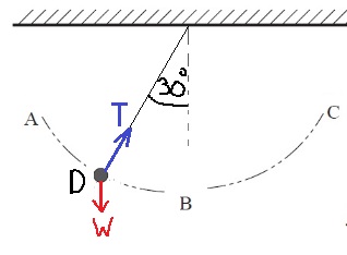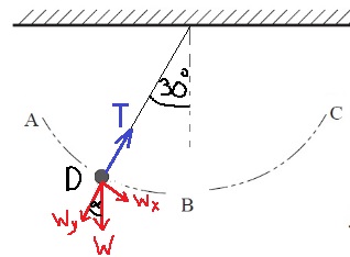 נערוך תרשים כוחות לכוחות הפועלים על הגוף כאשר זווית נטיית החוט היא 30 מעלות: