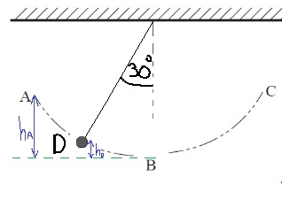 כדי לחשב את המתיחות בנקודה D נמצא את המהירות בנקודה D בעזרת שימור האנרגיה.