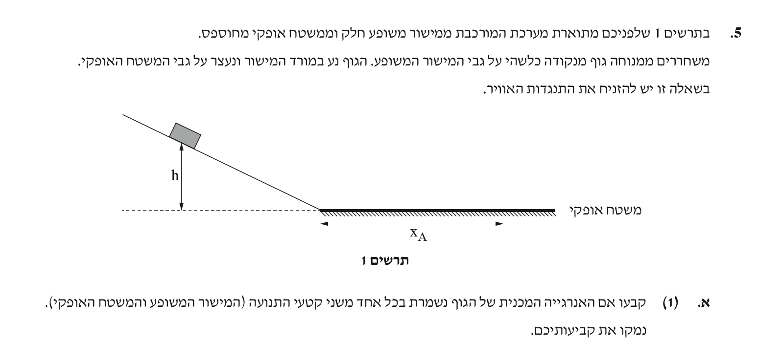 - 4. 2023,5- גוף נע במורד מישור נטוי וממשיך למישור אופקי.