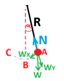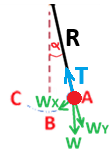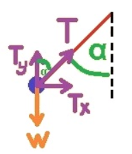 زاوية ميل الخيط α هي الزاوية بين القوة T ومركبة القوة TY: