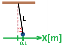 طول الخيط هو 0.841 متر، نحسب وفقًا لذلك زاوية ميل الخيط العظمى في المرة الخامسة.