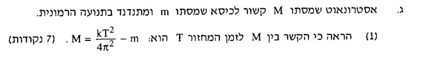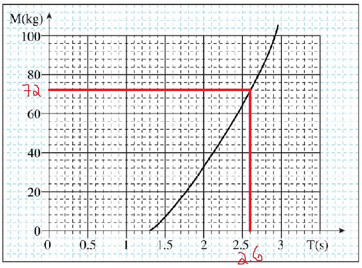 נתון גרף מסה בתלות בזמן המחזור . בהתאם לזמן המחזור ניתן לדעת את מסת האסטרונאוט.