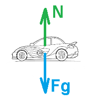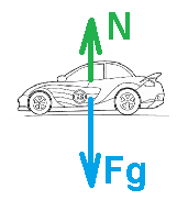 על המכונית פועלים שני כוחות, כוח הנורמל וכוח הכובד (שהוא כוח הכובד האוניברסלי).נערוך תרשים כוחות על המכונית: