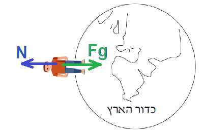 האדם נמצא על פני כדור הארץ כוח הכבידה האוניברסלי הפועל עליו הוא כוח הכובד mg.