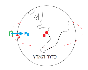 במקרה זה, בהתאם למיקום הנקודה A כוח הכבידה האוניברסלי לא פועל בכיוון נקודת מרכז הסיבוב (נקודה B).