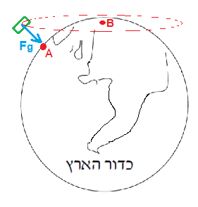 באיור הבא מופיע לוויין הנע מעל נקודה A הנמצאת על קו המשווה: